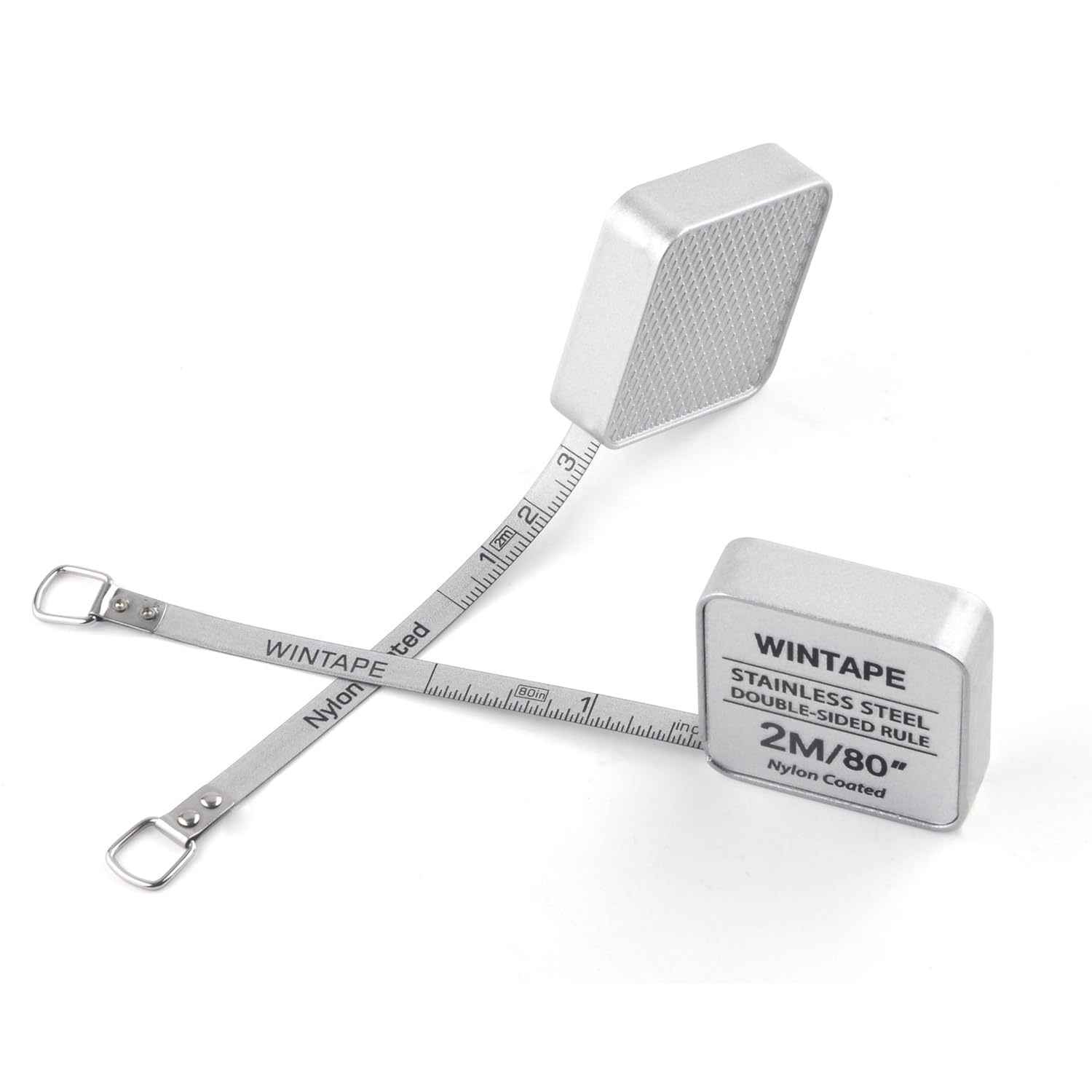WINTAPE 2m Massband Körper 200 cm / 80 inch, Rostfreier Stahl Measuring Tape (2 m mit Schlüsselring, autRostfreier Stahl Measuring Tape, aus Metall), Silber