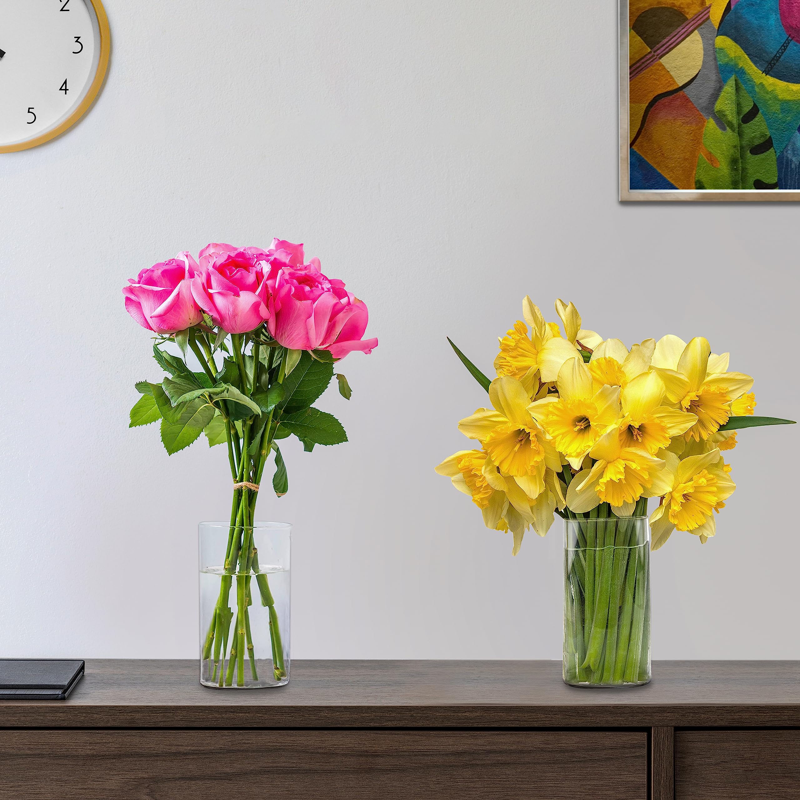 Winter Shore 15 cm Hohe Glasvasen für Tischdeko [6er-Pack] - Gläser für Kerzen, Blumen, Kieselsteine, Muscheln, Perlen & Windlicht Glas - Durchsichtige Glasvase Zylinder - Vasen Hochzeit Tischdeko