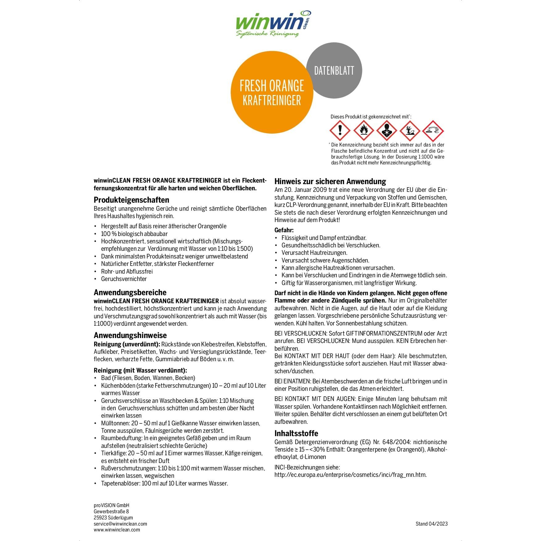 winwinCLEAN® fresh Orange Orangenreiniger Konzentrat [65% Reine Orangenterpene] Kraftvoller Orangenölreiniger Ökologisch | Hochergiebiger Orangen Reiniger mit Frischeduft | 250ML
