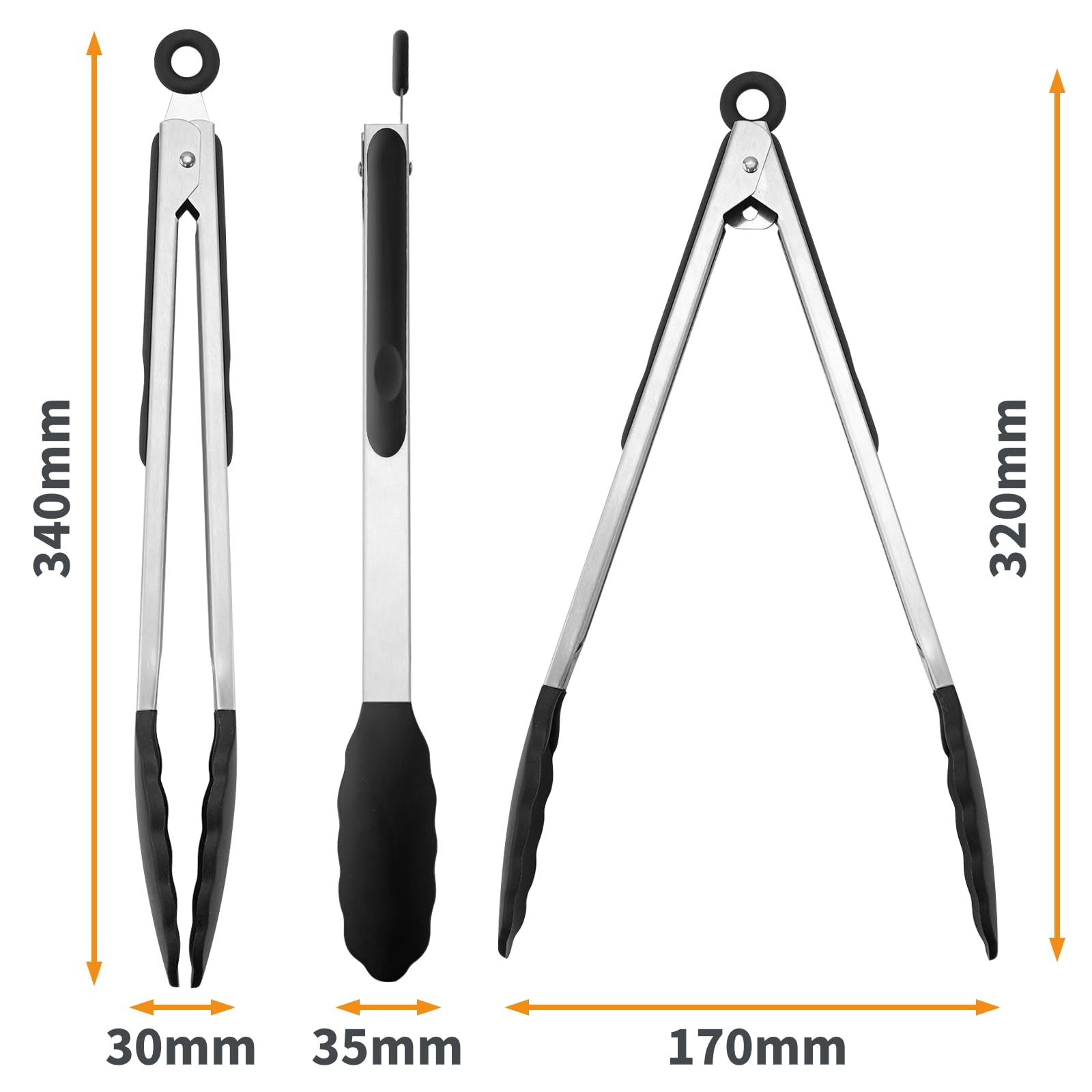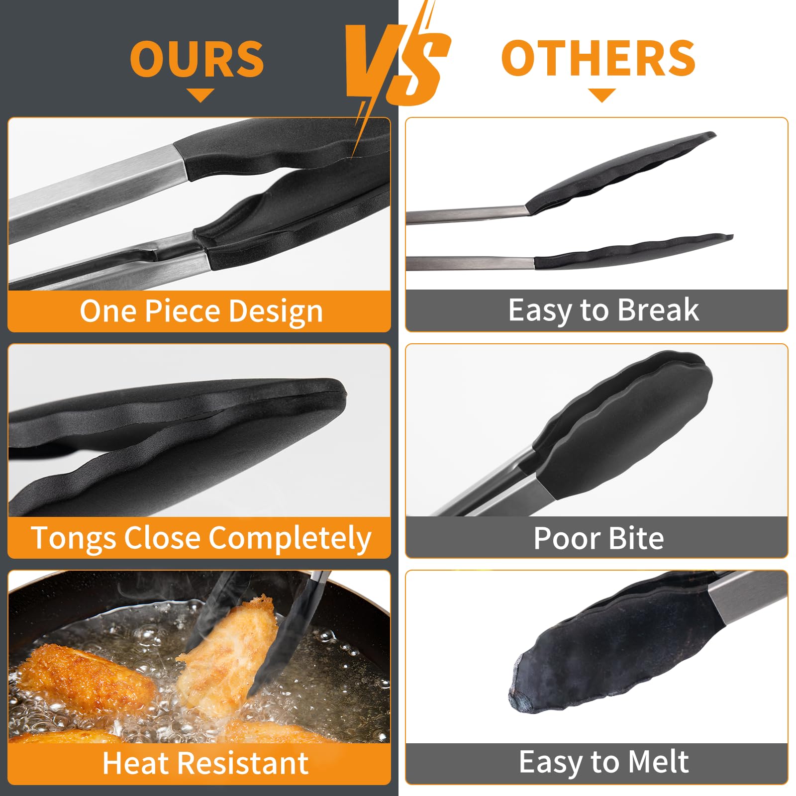• 【Mehrfachverwendung】Kochzange erfüllt eine Vielzahl von Kochbedürfnissen im Innen- und Aussenbereich und eignet sich für Pfannen, Herde, Öfen und andere Küchenutensilien. Sie eignet sich ideal zum Braten von Mais, Wenden von Burgern, Servieren von Salaten, Schneiden von Grillgut oder als Grillwender.