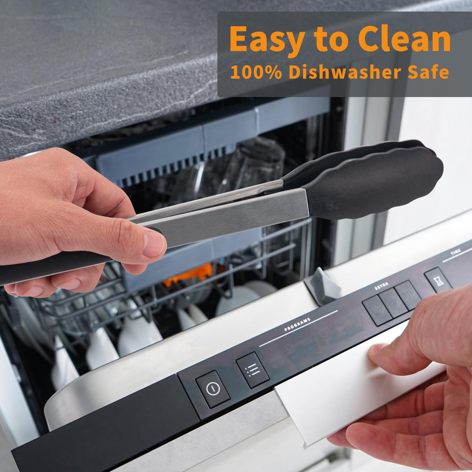 WISYOK 30cm Küchenzangen, Grillzange Hitzebeständige, Zange Küche, Kochzange mit Edelstahl und Silikonspitze, Silikonzangen, Tongs Kitchen, Fleischzange, Nudelzange zum Kochen, Grillen (Schwarz)