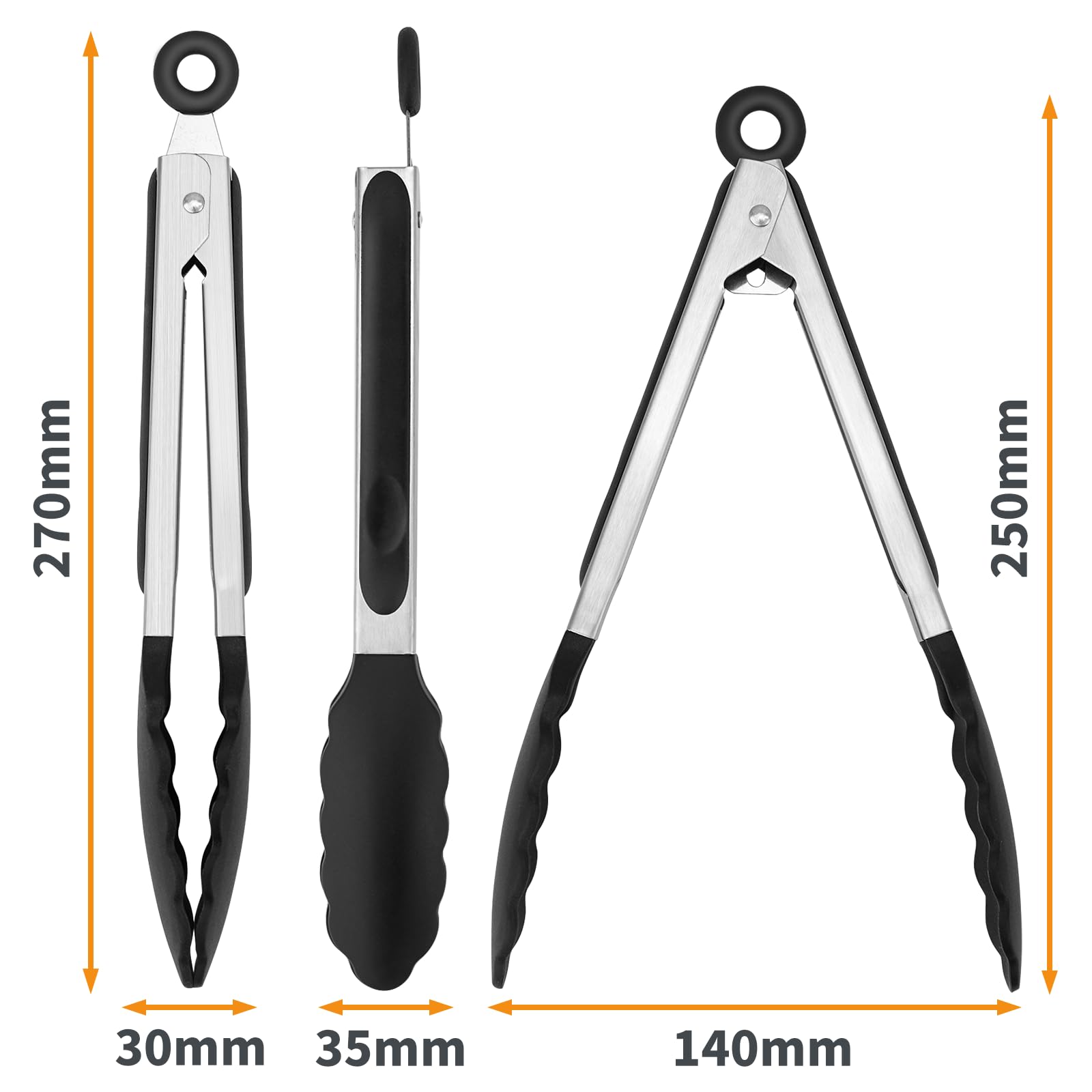• 【Mehrfachverwendung】Kochzange erfüllt eine Vielzahl von Kochbedürfnissen im Innen- und Aussenbereich und eignet sich für Pfannen, Herde, Öfen und andere Küchenutensilien. Sie eignet sich ideal zum Braten von Mais, Wenden von Burgern, Servieren von Salaten, Schneiden von Grillgut oder als Grillwender.
