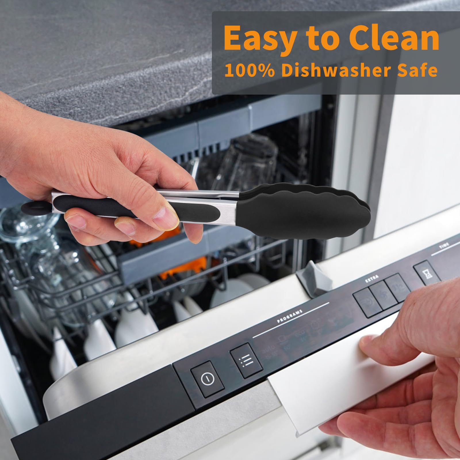 WISYOK Grillzange 23cm, Küchenzange Hitzebeständige, Zange Küche, Kochzange mit Edelstahl und Silikonspitze, Silikonzangen, Fleischzange zum Kochen, Grillen (Schwarz)