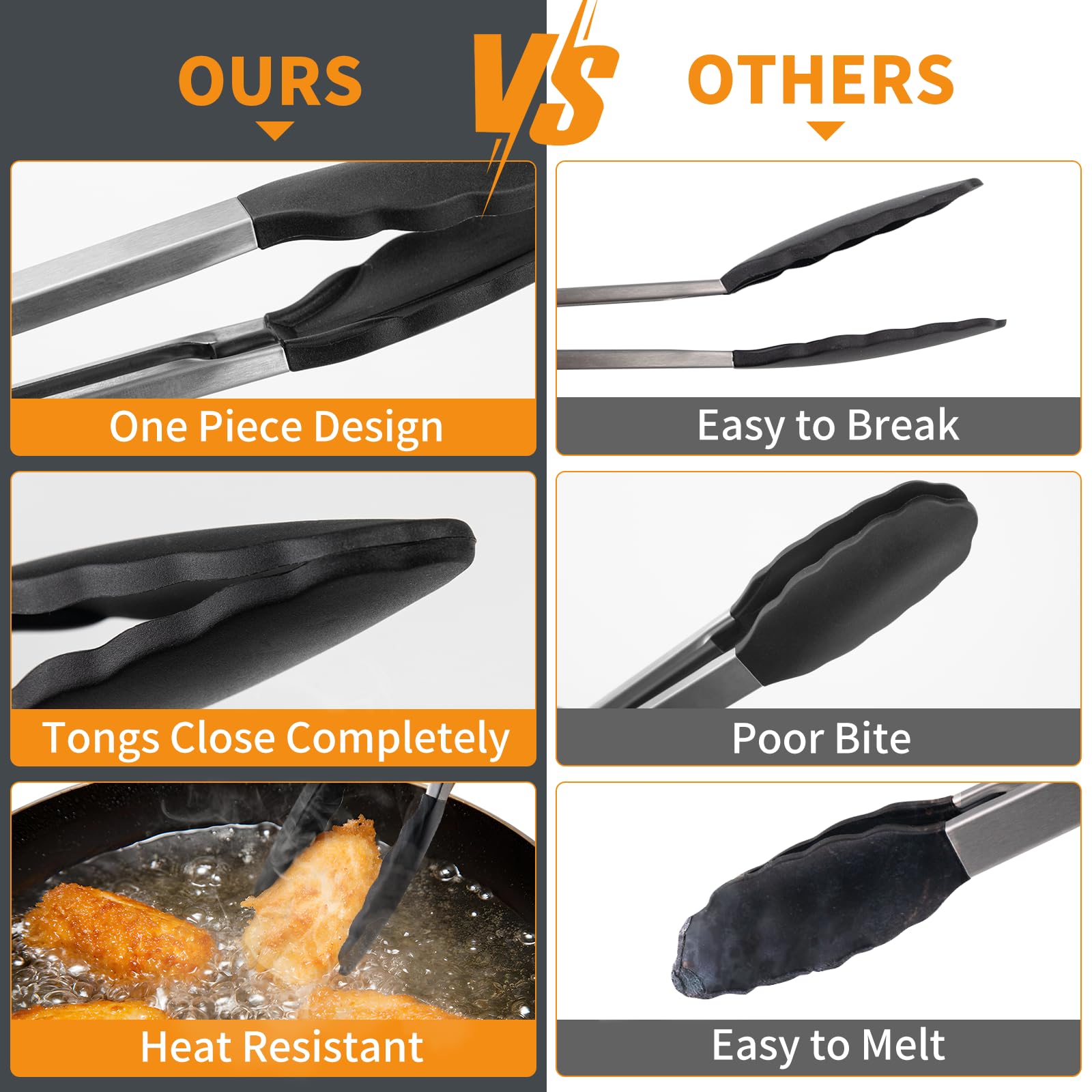 • 【Beste Wahl】23cm Küchenzangen haben gewellte Silikonköpfe, sind hitzebeständig (480 Grad Fahrenheit), antihaftbeschichtetes Kochgeschirr, kratzen Töpfe nicht leicht, schmelzen, rosten oder blättern nicht und können fast alles greifen, Ist Ihre ausgezeichnete Wahl.