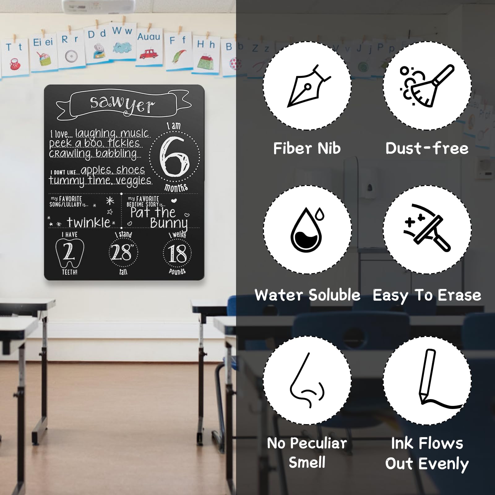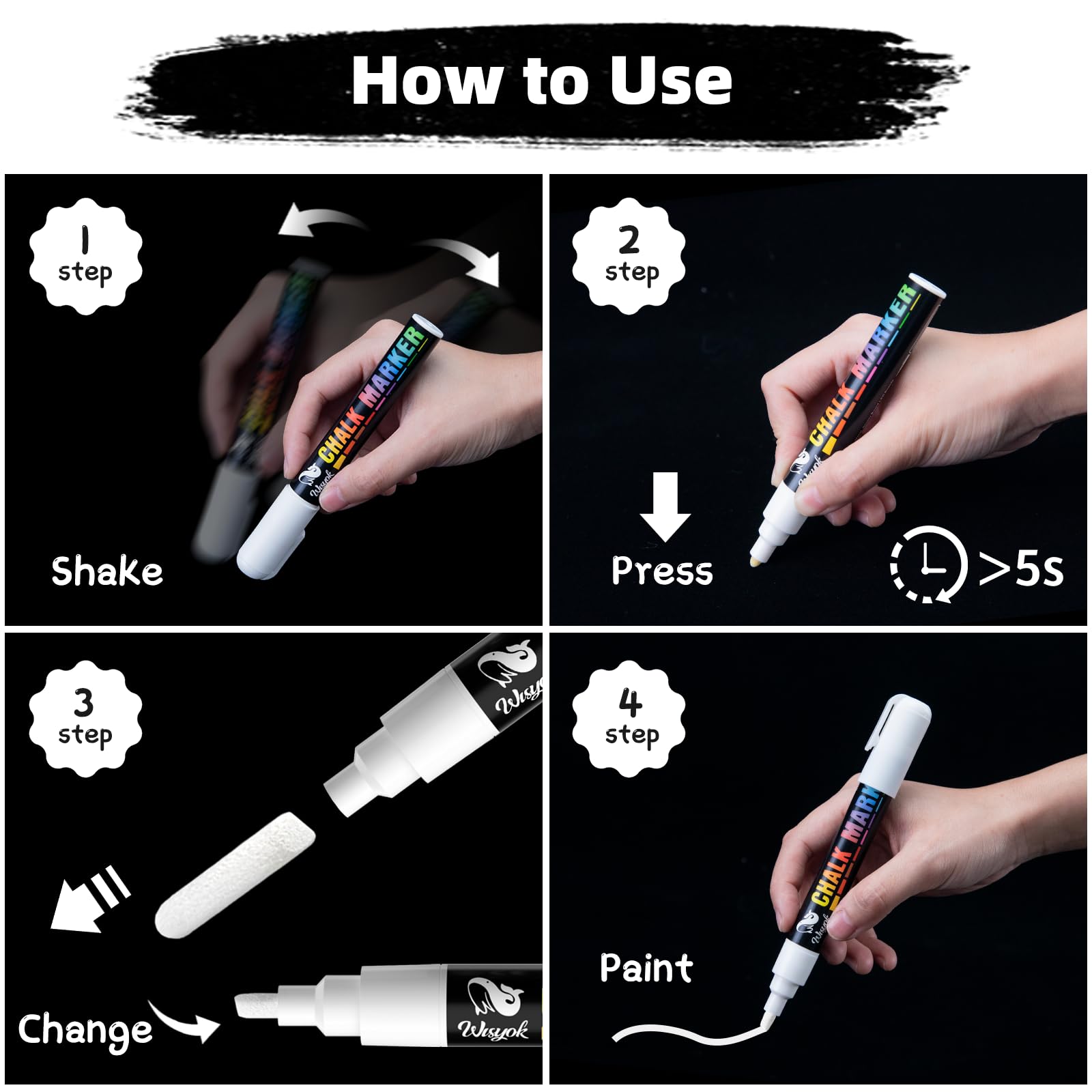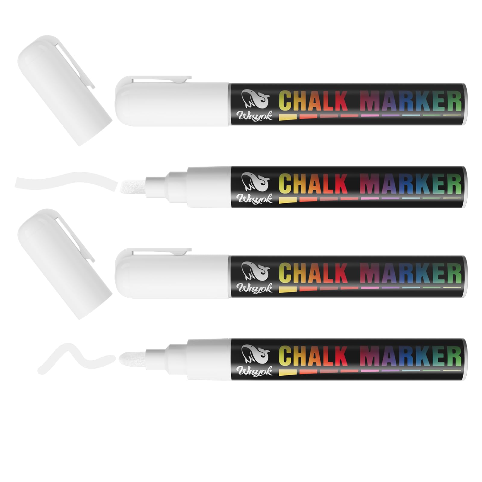 WISYOK Kreidestift Weiss, 4 Kreidemarker Weiss, Weisswandstifte, Flipchart Stifte, Folienstift Wasserlöslich, Kreidestifte für Tafel Abwaschbar, Whiteboard Marker, Weisse, 6 mm Wendespitze