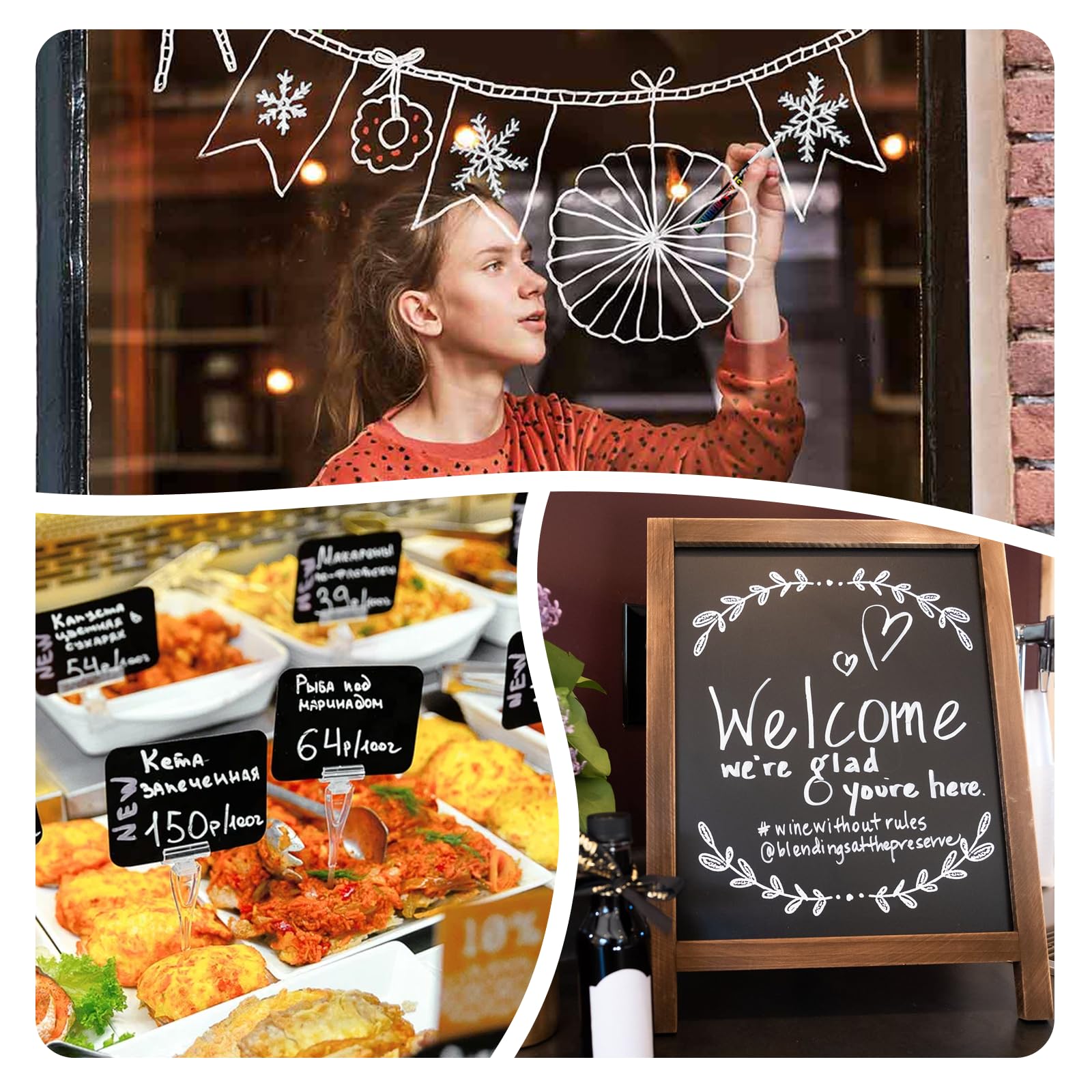 WISYOK 6pcs Kreidestift mit 45 Etiketten, Kreidemarker Weiss, Whiteboard Marker Weiss, Weisswandstifte, Flipchart Stifte, Kreidestifte für Tafel Abwaschbar - 3mm & 6 mm Wendespitze