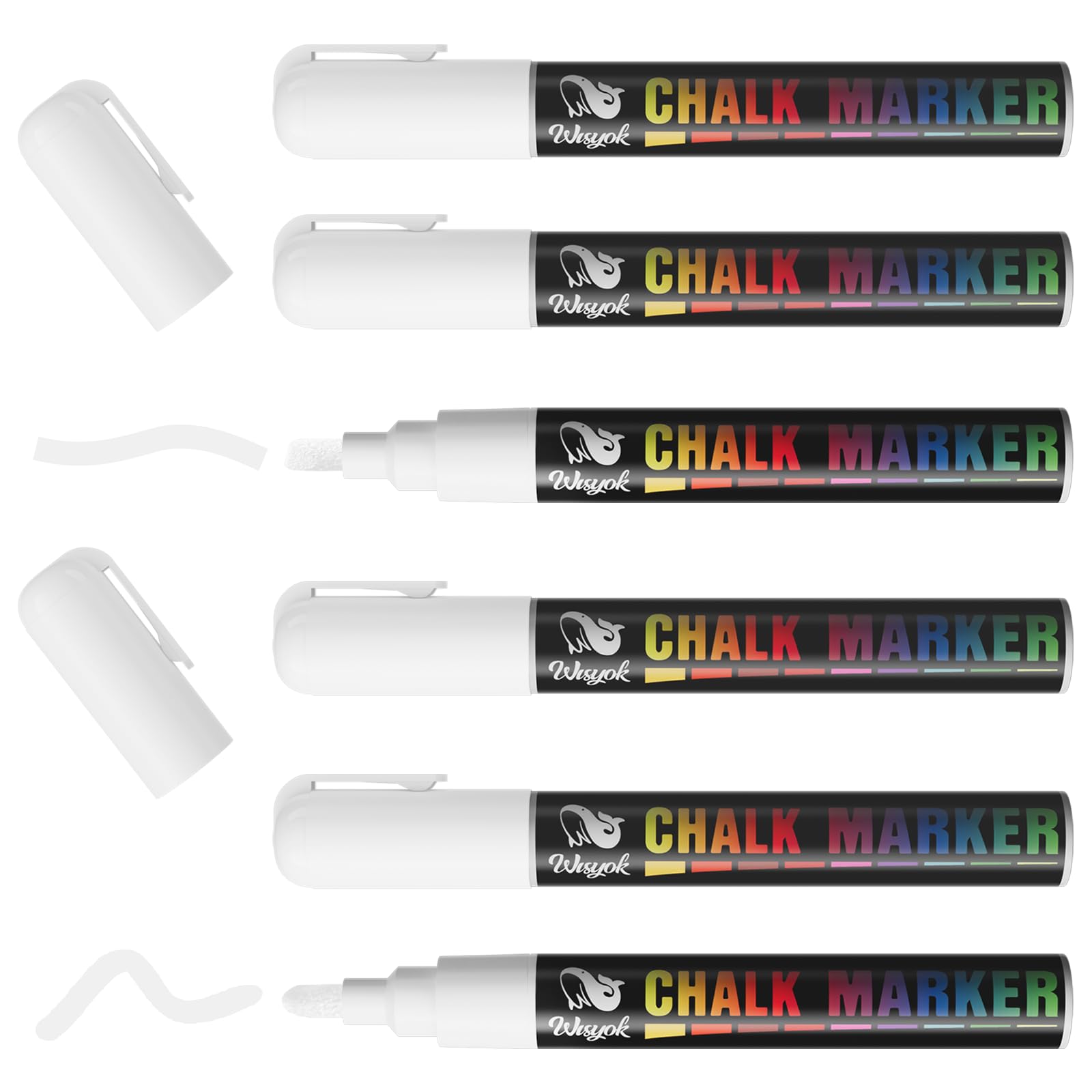 WISYOK 6pcs Kreidestifte, Kreidemarker Weiss, Whiteboard Marker Weiss, Weisswandstifte, Flipchart Stifte, Whiteboard Stifte, Kreidestifte für Tafel Abwaschbar - Wendespitze 6mm