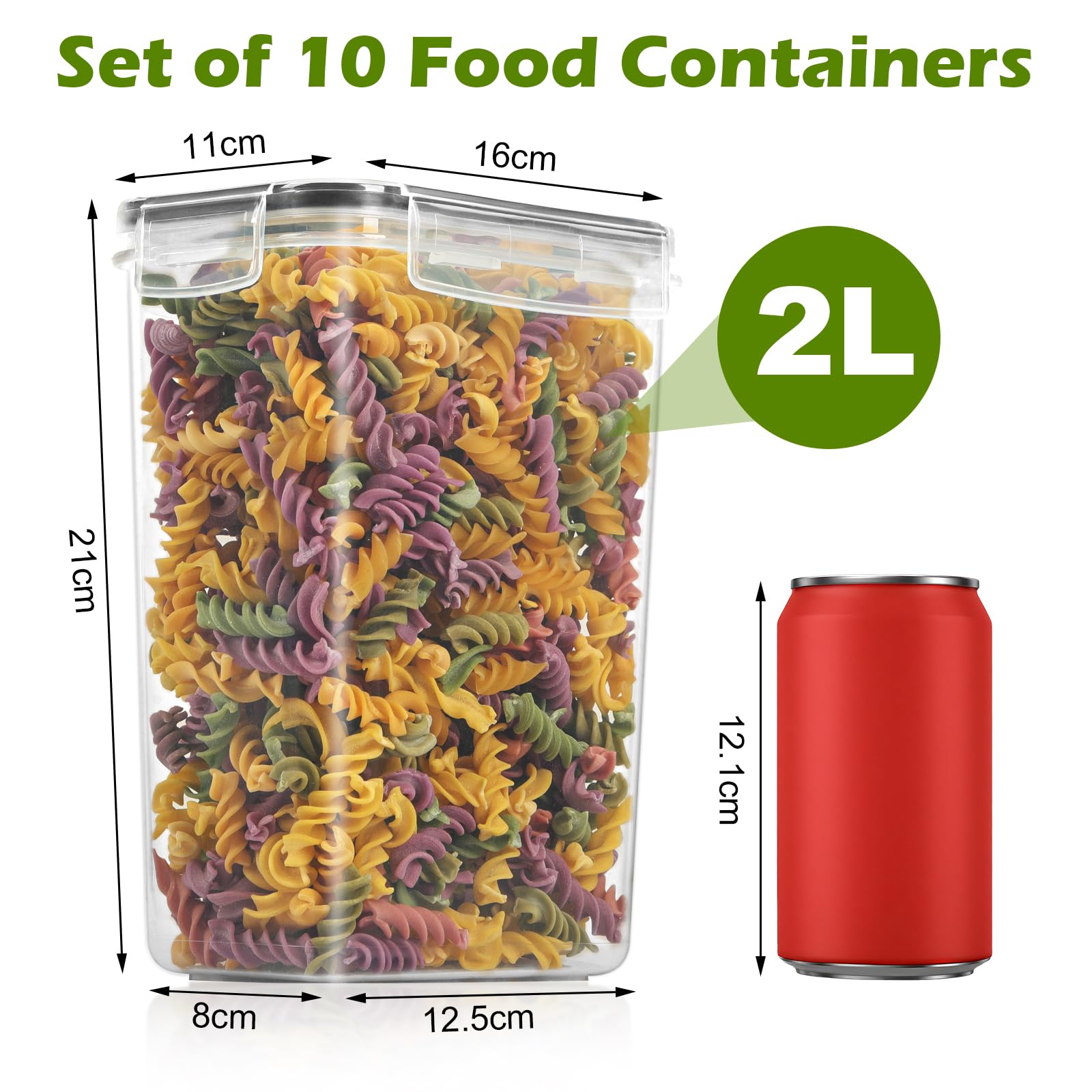 Withosent 10 Vorratsdosen mit Deckel 2L, Aufbewahrungsbox, luftdicht, Kunststoff, Müslibehälter, Vorratsdosen Set