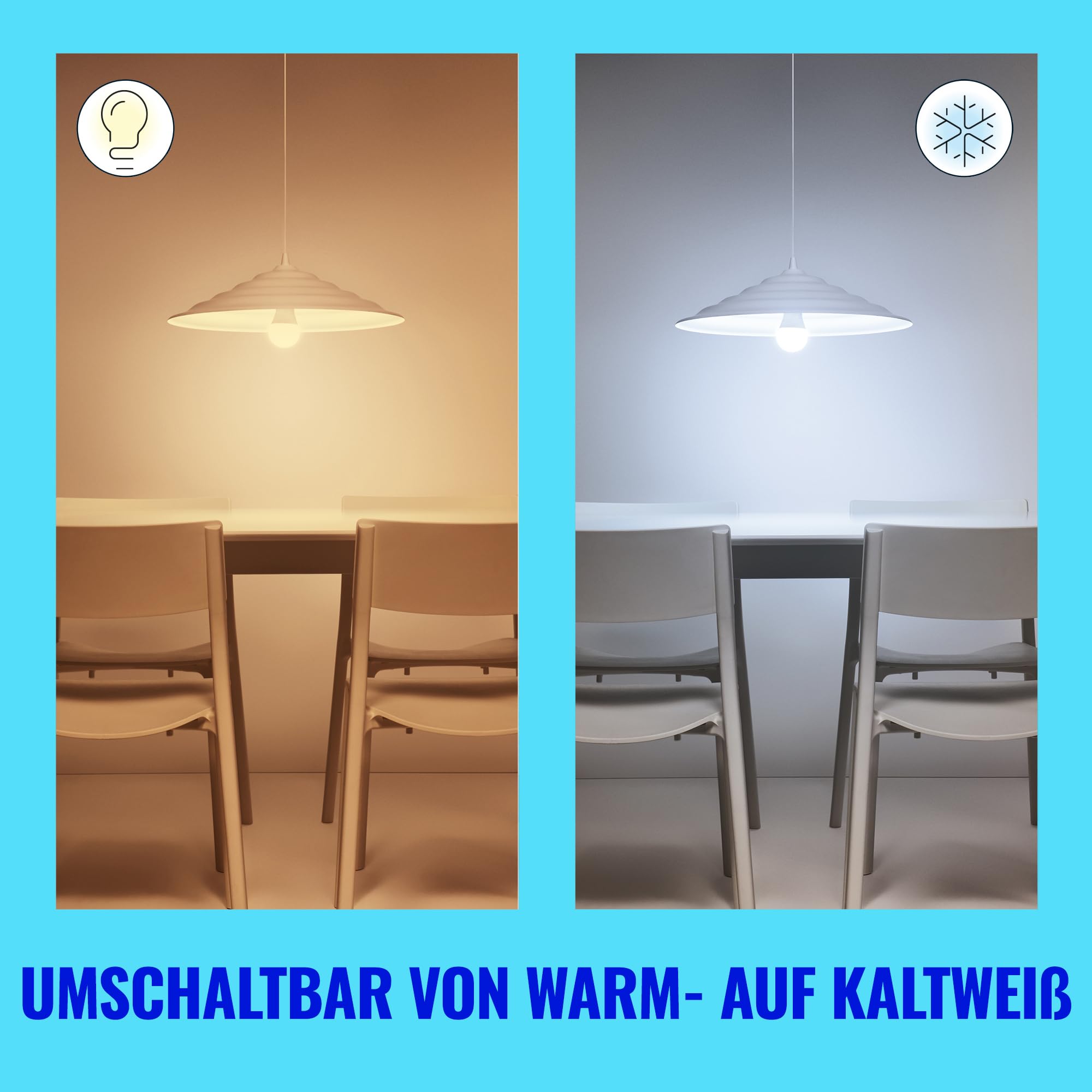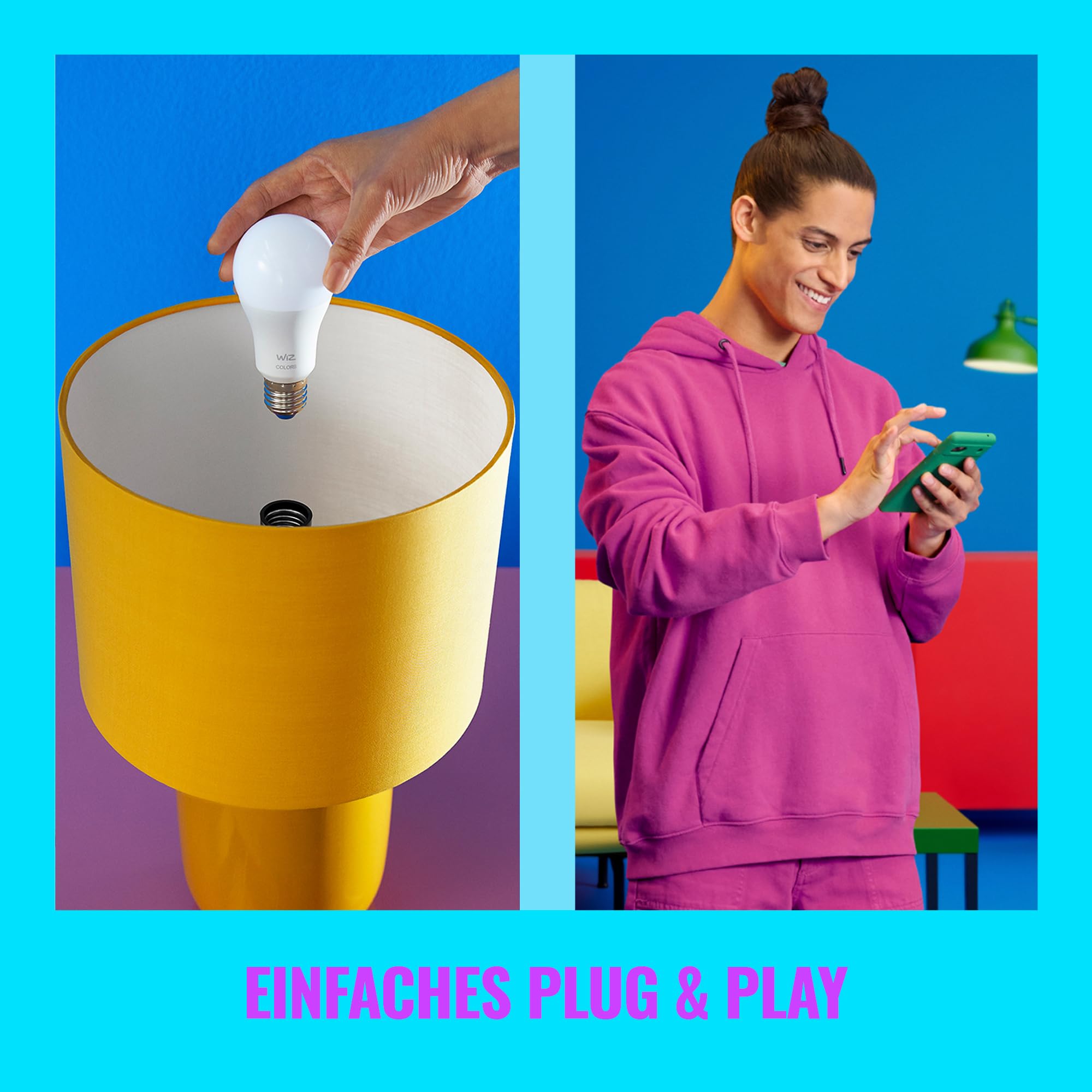 Setzen Sie Ihren Komfort und Ihr Wohlbefinden in den Vordergrund! Diese smarten Lampen haben die bekannte und beliebte E27-Standardform, aber ihr zeitloses Design verleihen ihnen einen zusätzlichen Hauch von Eleganz. Und sie bieten Ihnen etwas, das alles andere als Standard ist: abstimmbares weisses Licht für alle Ihre Bedürfnisse und Stimmungen. Stellen Sie kühlweisses Licht ein, wenn Sie sich konzentrieren müssen, oder gemütliches, warmweisses Licht, wenn Sie sich zurücklehnen und entspannen möchten - wie auch immer Sie Ihr Leben zu Hause am besten und angenehmsten gestalten können. All dies plus Lichtsteuerung über Ihre Stimme, über die WiZ Fernbedienung oder die WiZ App, egal ob Sie zu Hause oder unterwegs sind. Die WiZ E27 Lampen lassen sich über Ihr bestehendes WLAN verbinden - es ist keine zusätzliche Hardware, kein Netzwerk und keine Einrichtung erforderlich.