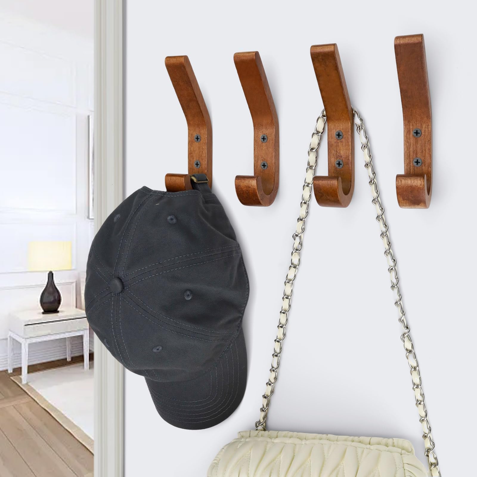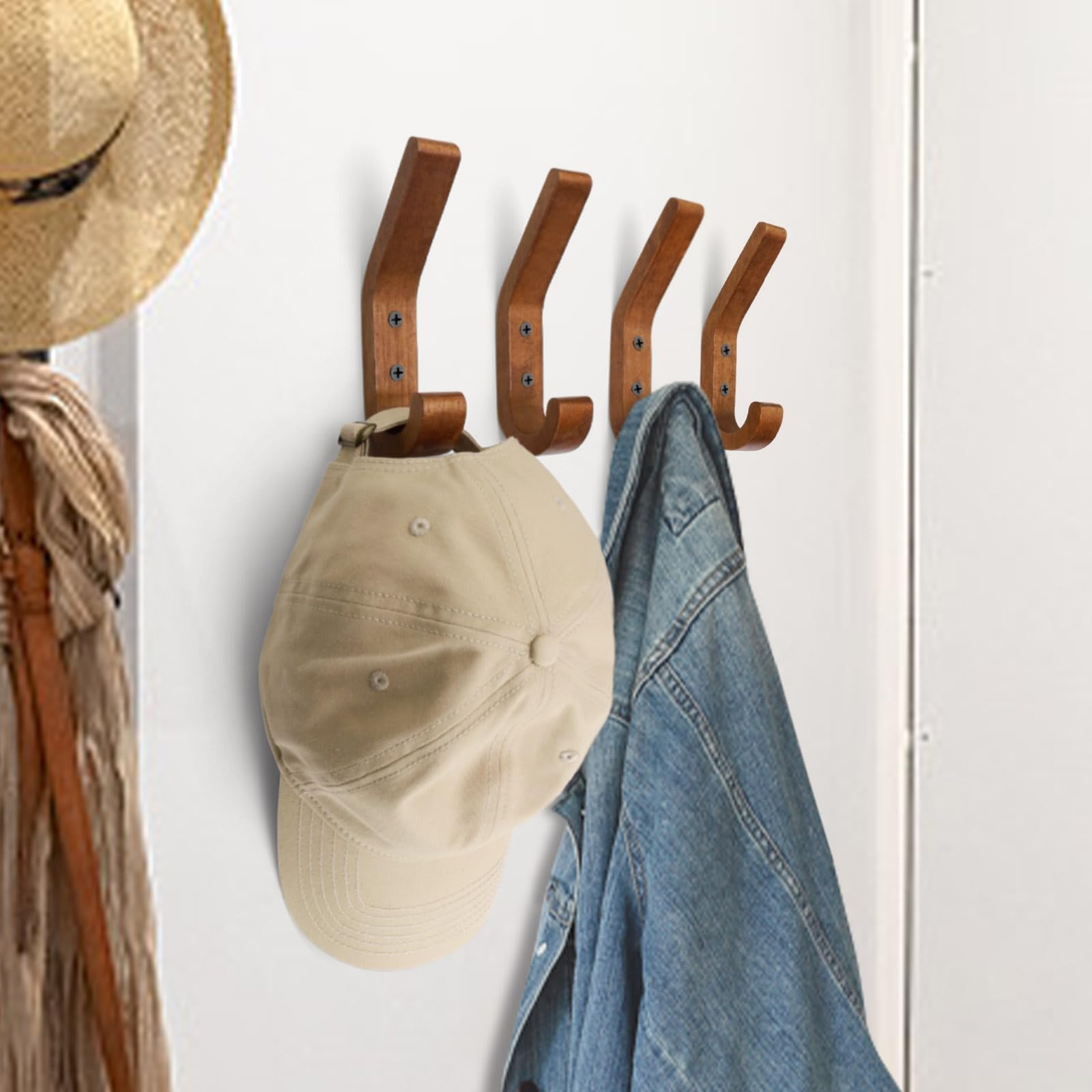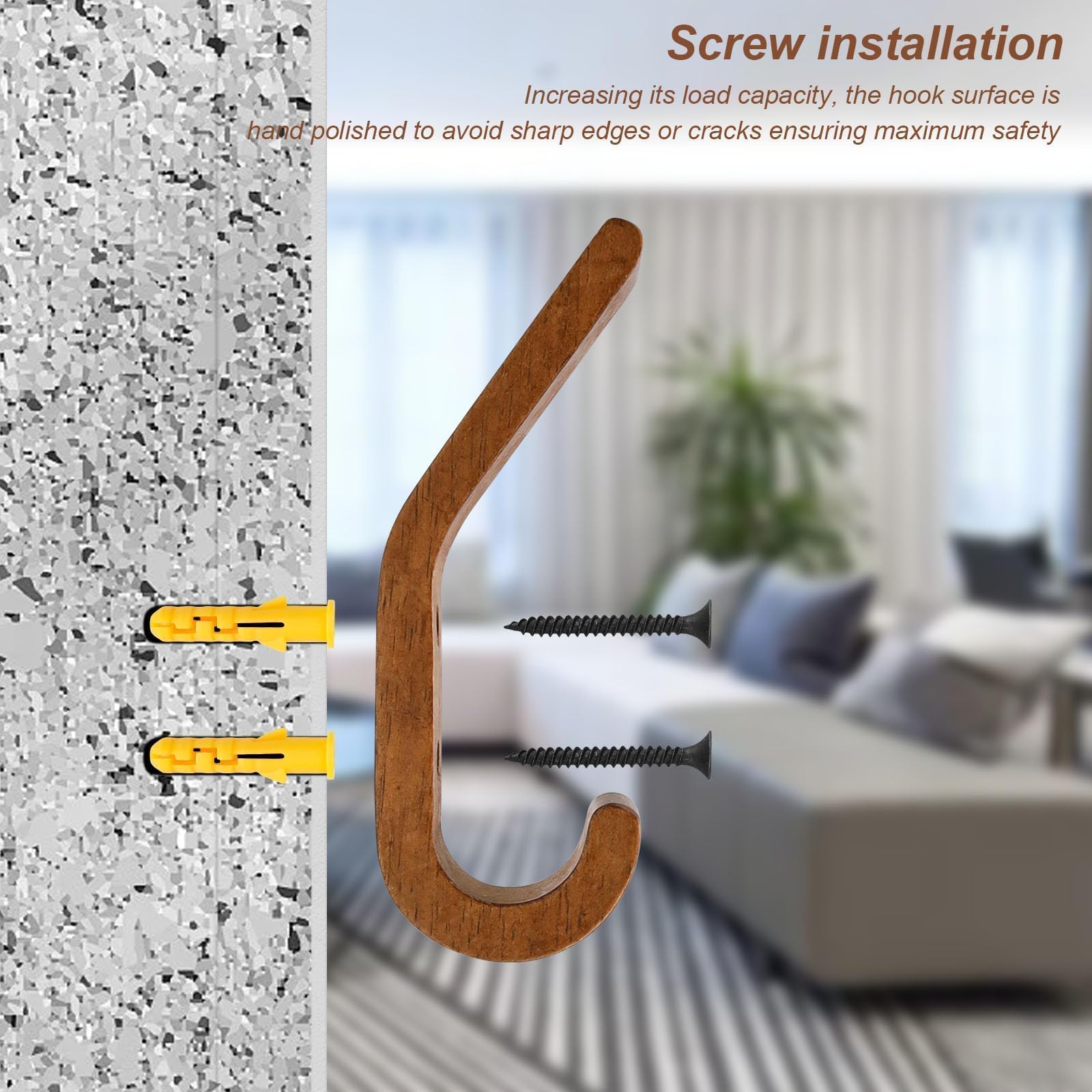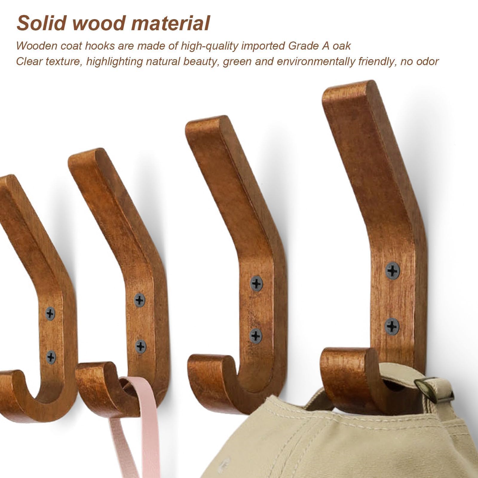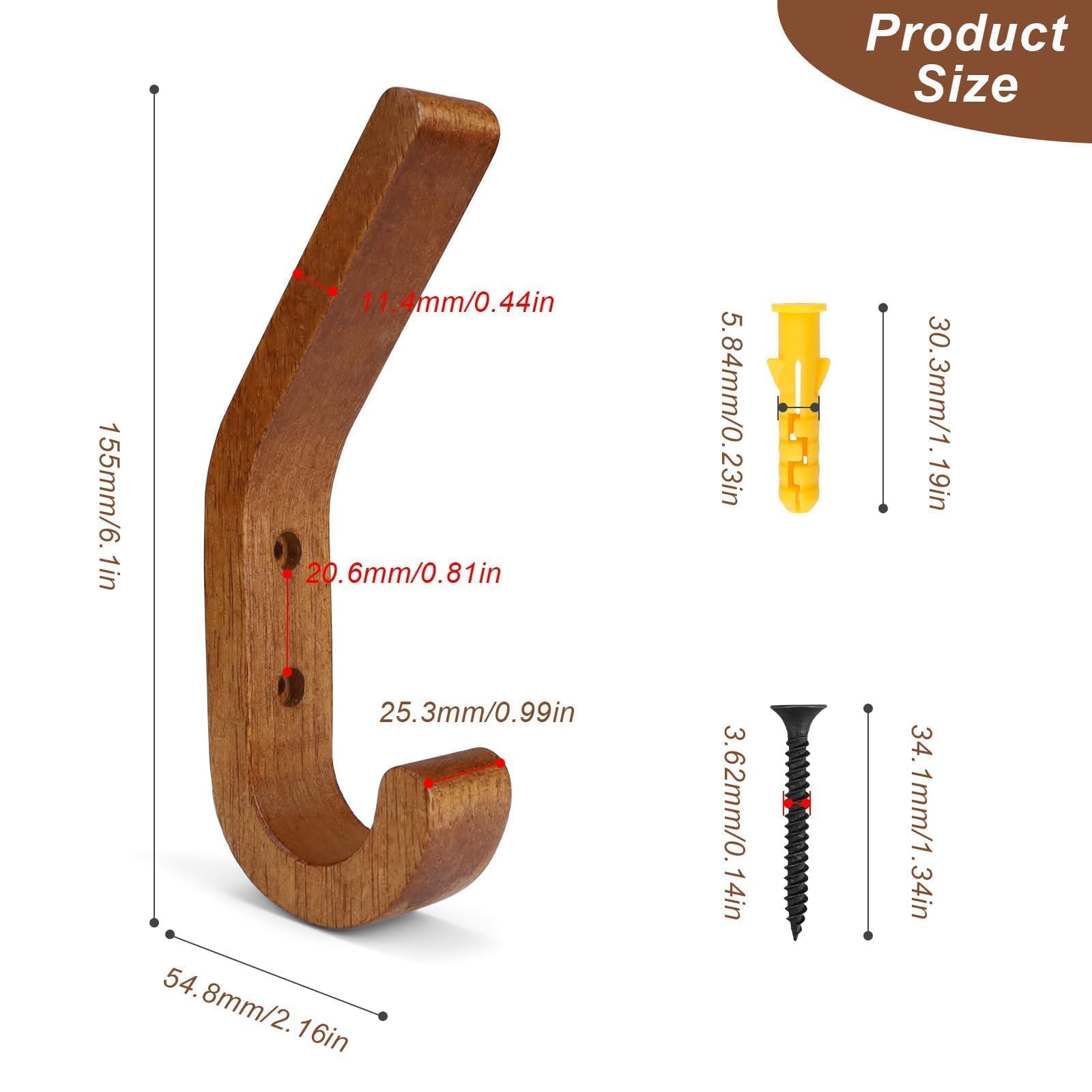 WJUAN Holz Kleiderhaken - 4er Set 155 mm Walnussfarbene J-Haken, Verbesserte Version Handtuchhaken, A-Qualität Eichenholz, Oberfläche poliert und geölt, für Küche und Schlafzimmer