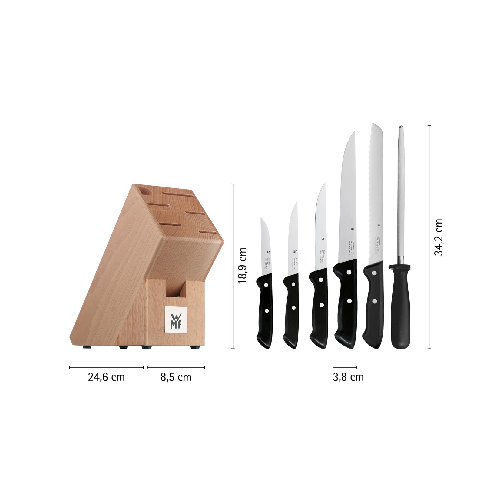 WMF Classic Line Messerblock mit Messerset 7-teilig, bestückt, 5 Messer, Wetzstahl, Buchenholz-Block, Spezialklingenstahl, schwarz