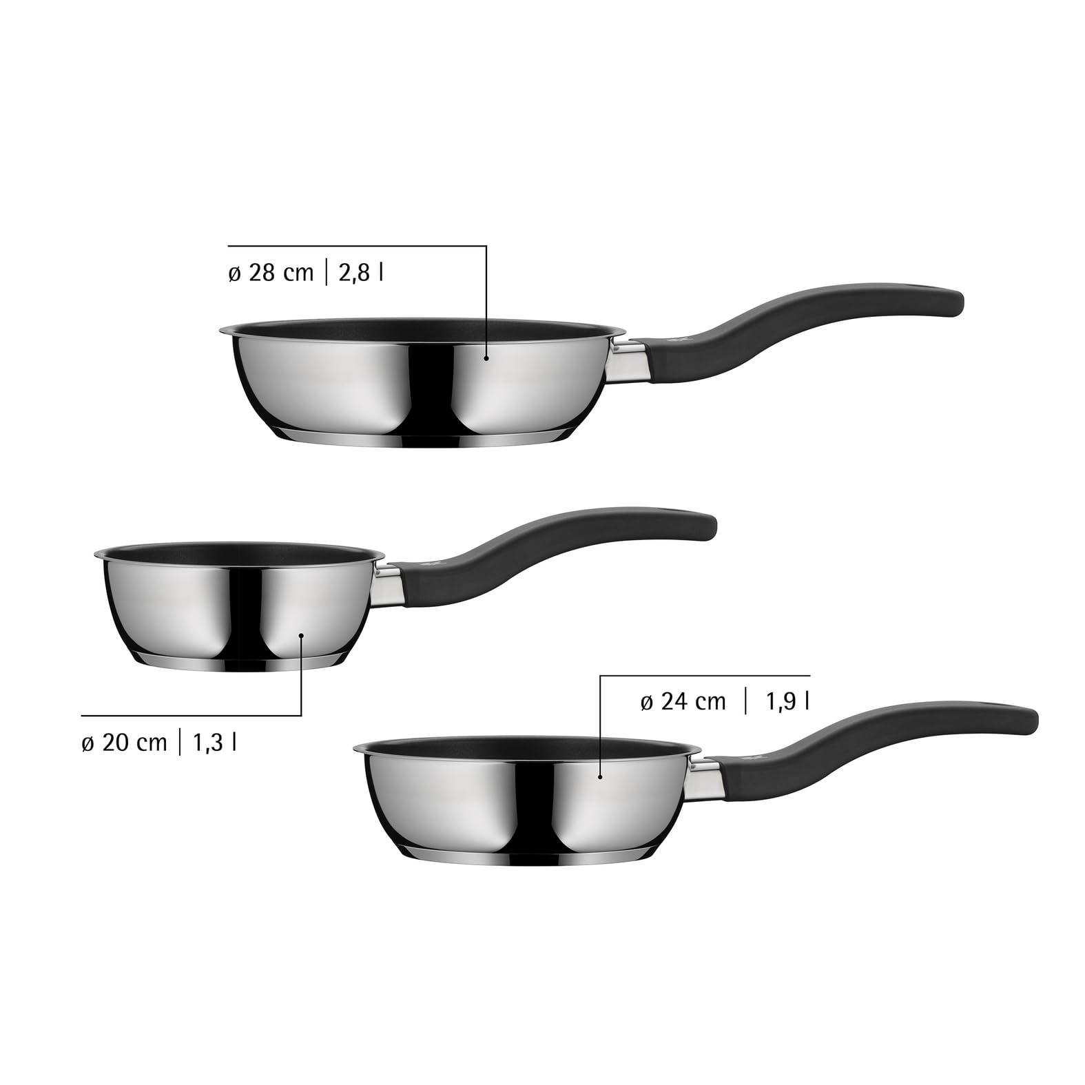 WMF Devil Pfannenset Induktion 3-teilig – Bratpfannen 20, 24, 28 cm – Edelstahl Cromargan Antihaft Pfannen Set, beschichtet, spülmaschinengeeignet, backofenfest, hitzebeständig und kratzfest