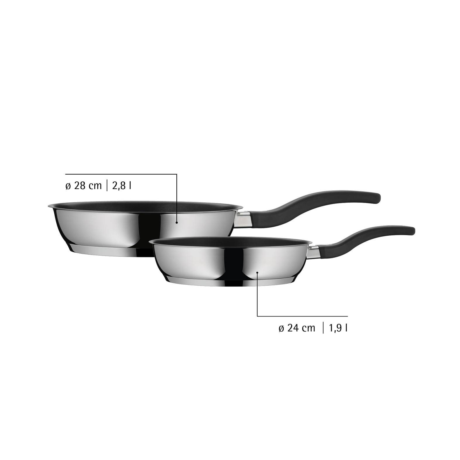 WMF Pfannenset Induktion 2-teilig 28cm + 24cm, Edelstahl mit Antihaftbeschichtung für fettfreies Braten, alle Herdarten, gleichmässige Wärmeverteilung, spülmaschinenfest, 2 Jahre Garantie, Bratpfannen