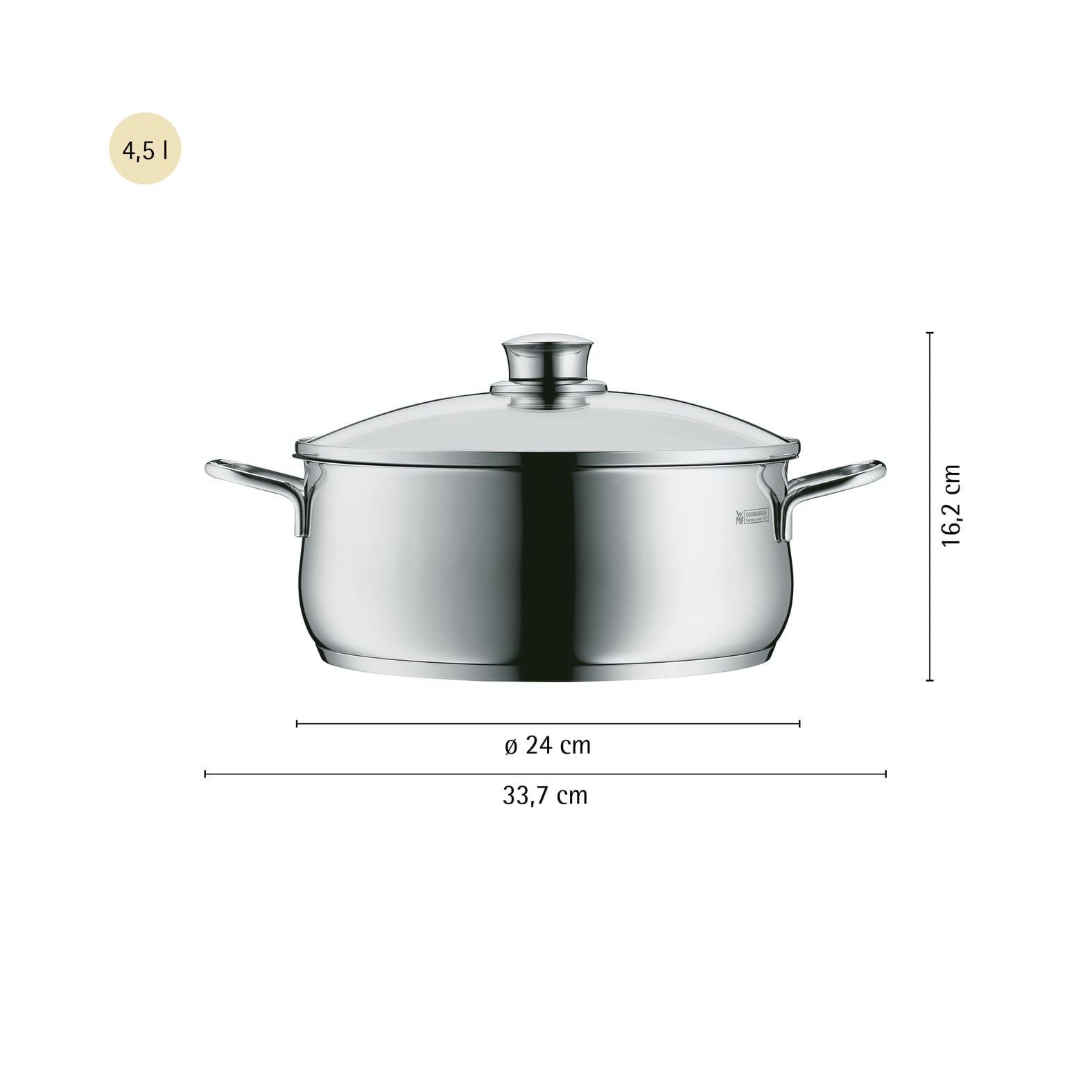 WMF Diadem Plus Kochtopf Ø 24 cm gross, Bratentopf mit Glasdeckel, Kochtopf Induktion, spülmaschinengeeignet, 4,5l, für alle gängigen Herdarten geeignet, Cromargan Edelstahl poliert, unbeschichtet
