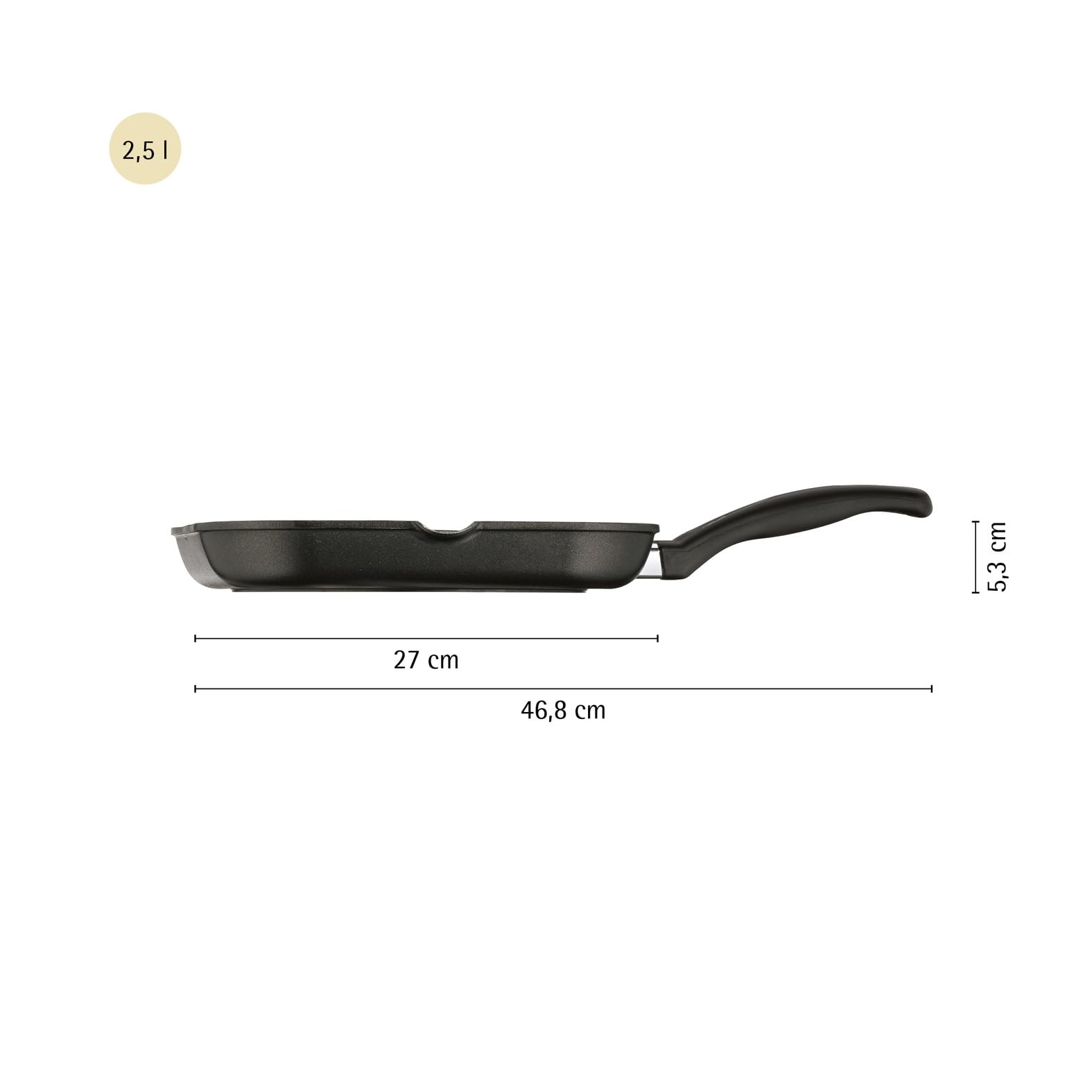 Haben Sie das ganze Jahr über Lust auf leckeres Grillgut wie saftige Steaks, knackige Bratwürste oder bunte Gemüsespiesse? Mit den WMF Grillpfannen in unterschiedlichen Ausführungen können Sie gemütlich zu Hause und bei jedem Wetter grillen. Die praktischen und formschönen Grillpfannen werden schnell heiss, und die Hitze verteilt sich gleichmässig. So müssen Sie Ihre Rinderfilets, Putensteaks und Kartoffelecken nicht ständig hin- und herschieben – denn alle Speisen mit gleicher Garzeit werden zum selben Zeitpunkt fertig. Das spart Zeit und Energie. Wenn Sie für das besondere Aroma mit Öl grillen, läuft das überschüssige Fett in die speziell dafür konstruierten Rillen ab. Ein Tipp: Marinieren Sie Ihr Fleisch eine Stunde vor dem Grillen und lassen Sie die frischen Kräuteraromen einziehen. Auch Grillwürste passen in den quadratischen Pfannen perfekt nebeneinander und erhalten dank des geriffelten Bodens appetitliche Grillstreifen. Durch die Antihaftversiegelung reicht eine einfache Handwäsche zur Reinigung der Grill Pfanne aus.Die PFOA freie* (*gemäss VO (EG) 1907/2006) Antihaftversiegelung Durit Select Plus ist ideal für empfindliche Speisen, fettarmes Anbraten geeignet und alles, was langsam bei relativ niedrigen Temperaturen gebraten wird wie Fisch, Eierspeisen, Paniertes oder Bratkartoffeln.