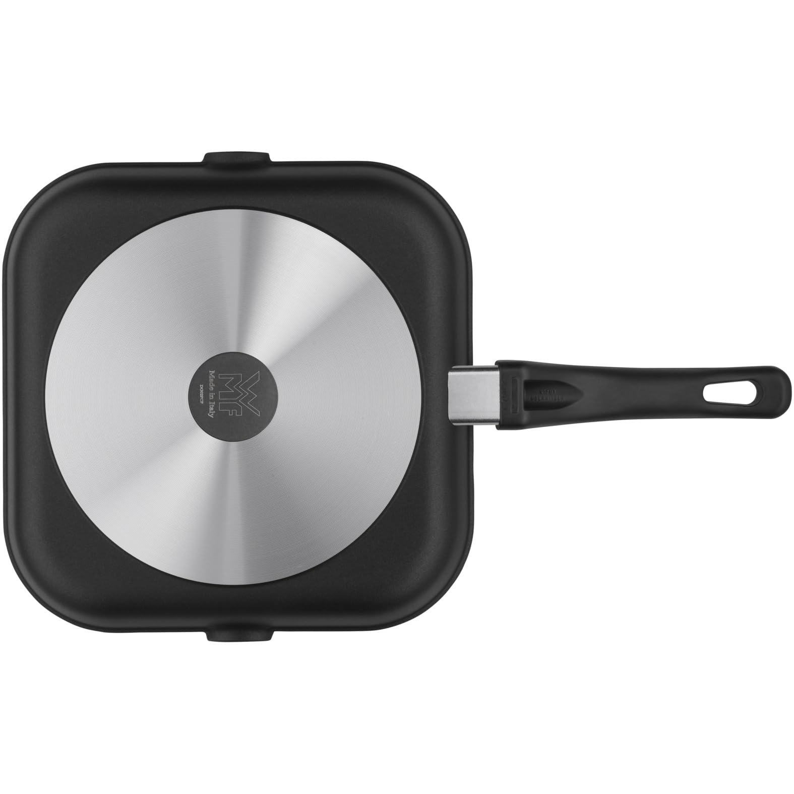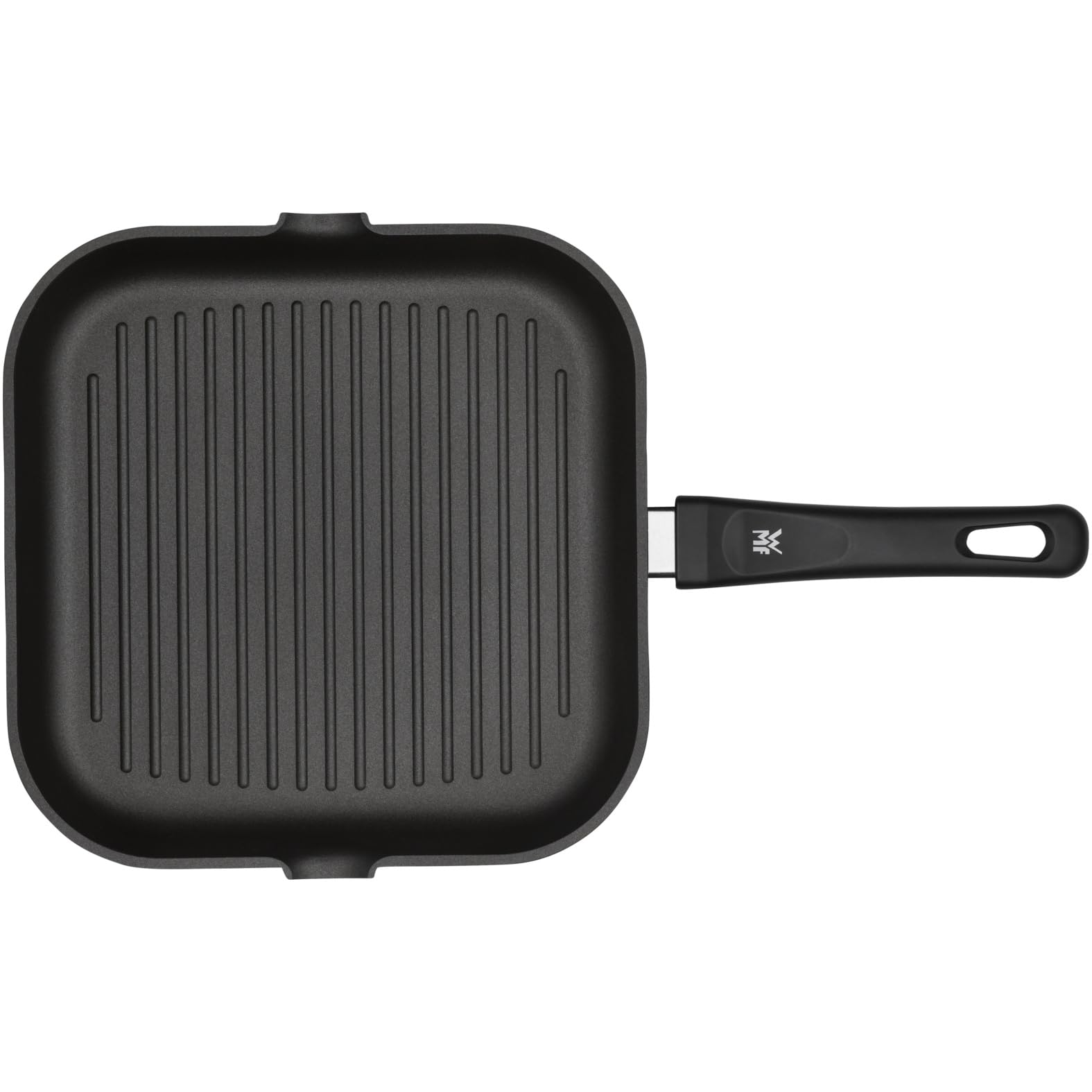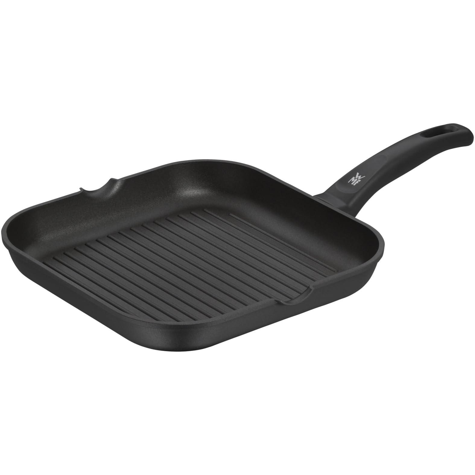 WMF Grillpfanne 27 x 27 cm mit Ausguss, Steakpfanne gerillt, nicht induktionsgeeignet, Aluminium beschichtet, Grill Pfanne ideal zum knusprigen Braten, eckige Pfanne, Kunststoffgriff mit Flammschutz