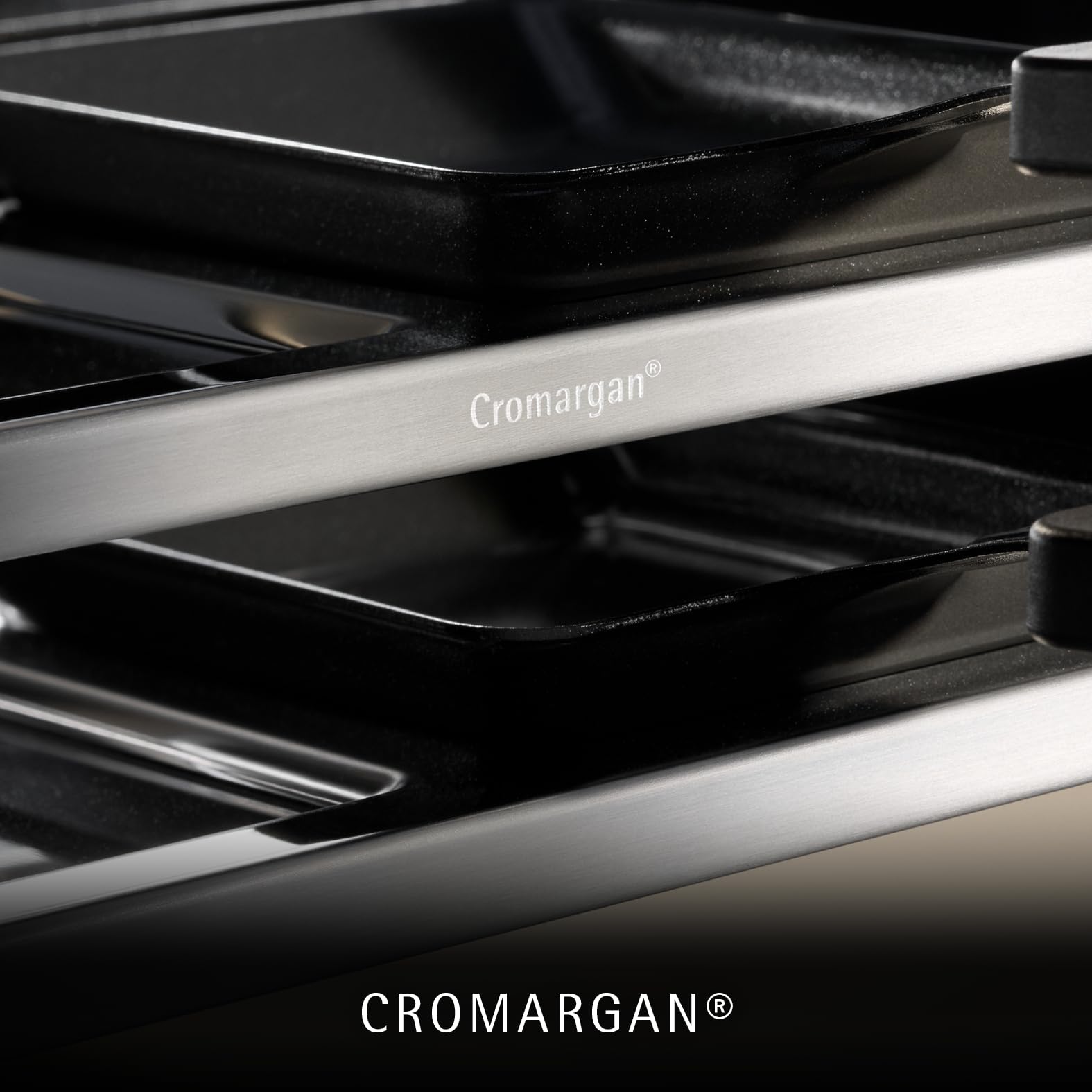 Raclette-Genuss auf einem neuen Niveau – mit dem WMF Lono Selection Raclette mit integrierter Pfännchen-Ablage für bis zu 8 Personen. Dank des optimal aufeinander abgestimmten Zusammenspiels von hoher Heizleistung und variabler Temperaturkontrolle, ermöglicht das Gerät aussergewöhnlich gleichmässiges Gratinieren und damit beste Ergebnisse. Mit dabei sind jeweils 8 spülmaschinengeeignete keramikbeschichtete Pfännchen sowie zugehörige Raclette-Spatel.