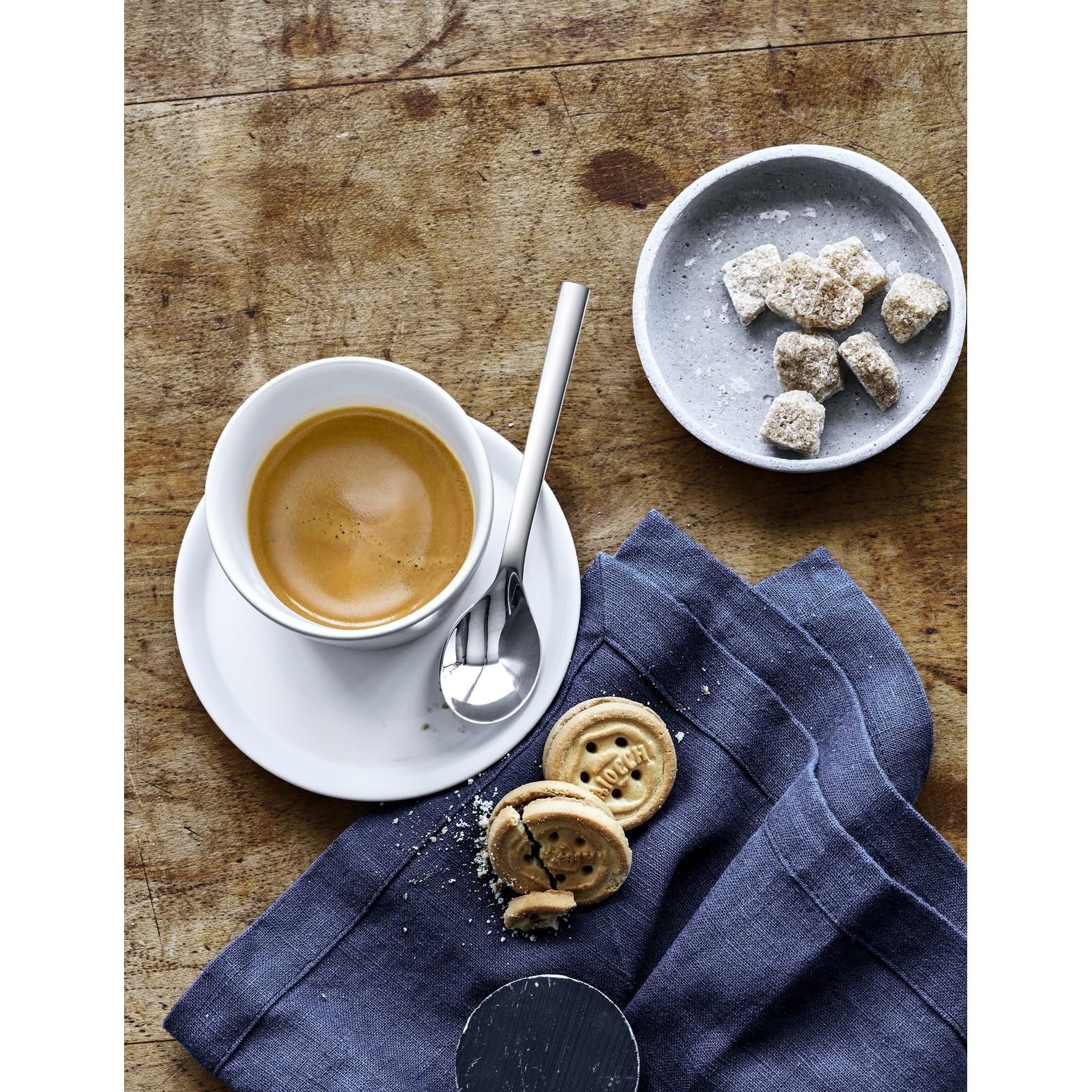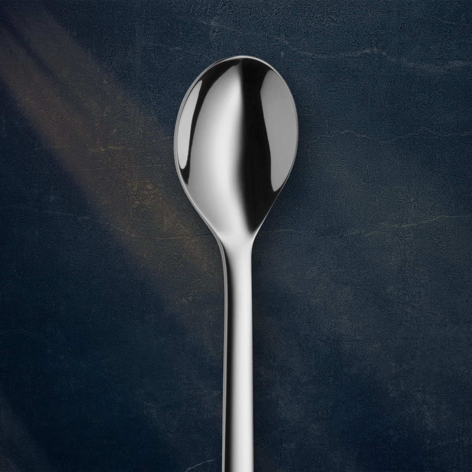 Der Kaffeelöffel, auch Teelöffel genannt, ist kaffeetassengerecht und passt in seiner kleinen, handlichen Grösse sowohl zur Tasse selbst als auch daneben zum Ablegen auf die Untertasse. Zum Einsatz kommt er beim Umrühren von Getränken in der Tasse oder im Glas, aber ebenso beim Verzehr von Desserts. Darüber hinaus fungiert er als Masseinheit: Zwei Teelöffel, gestrichen oder gehäuft – als Mengenangabe ist dieses Mass international bekannt.Meist sind es Kleinigkeiten, die den Alltag leichter machen. Zum Beispiel ein Servierlöffel, bei dem zu viel Flüssigkeit einfach abtropfen kann. Das Angebot der Serie reicht von verschiedenen Löffelarten wie Latte Macchiato Löffel über Tortenheber und Salatbestecke bis hin zu verschiedenen Arten von Servierzangen. Die Besteckteile der Kollektion Nuova überraschen mit funktionalen Details. Durch ihre klare Formensprache und das schlichte Design sind alle Teile vielseitig kombinierbar. Das Material Cromargan ist rostfrei, geschmacksneutral und beständig gegen Speisesäuren. Im Gebrauch ist es stabil und unverwüstlich. Alle Teile der Kollektion Nuova sind spülmaschinenfest. Nuova ist auf das Besteckmodell Atria abgestimmt. In der hochwertigen Geschenkverpackung eignet sich die Besteckserie perfekt für ein Geschenk.