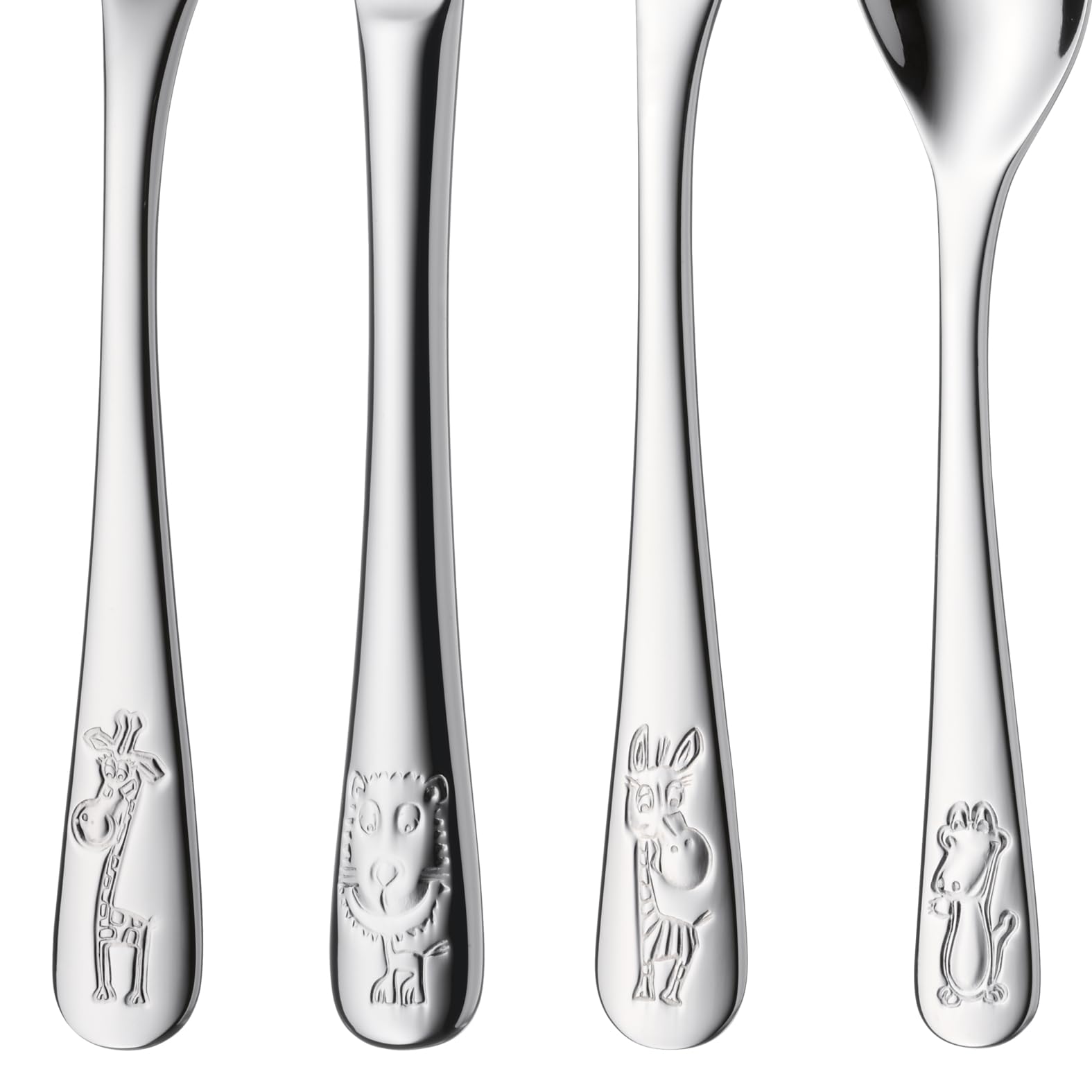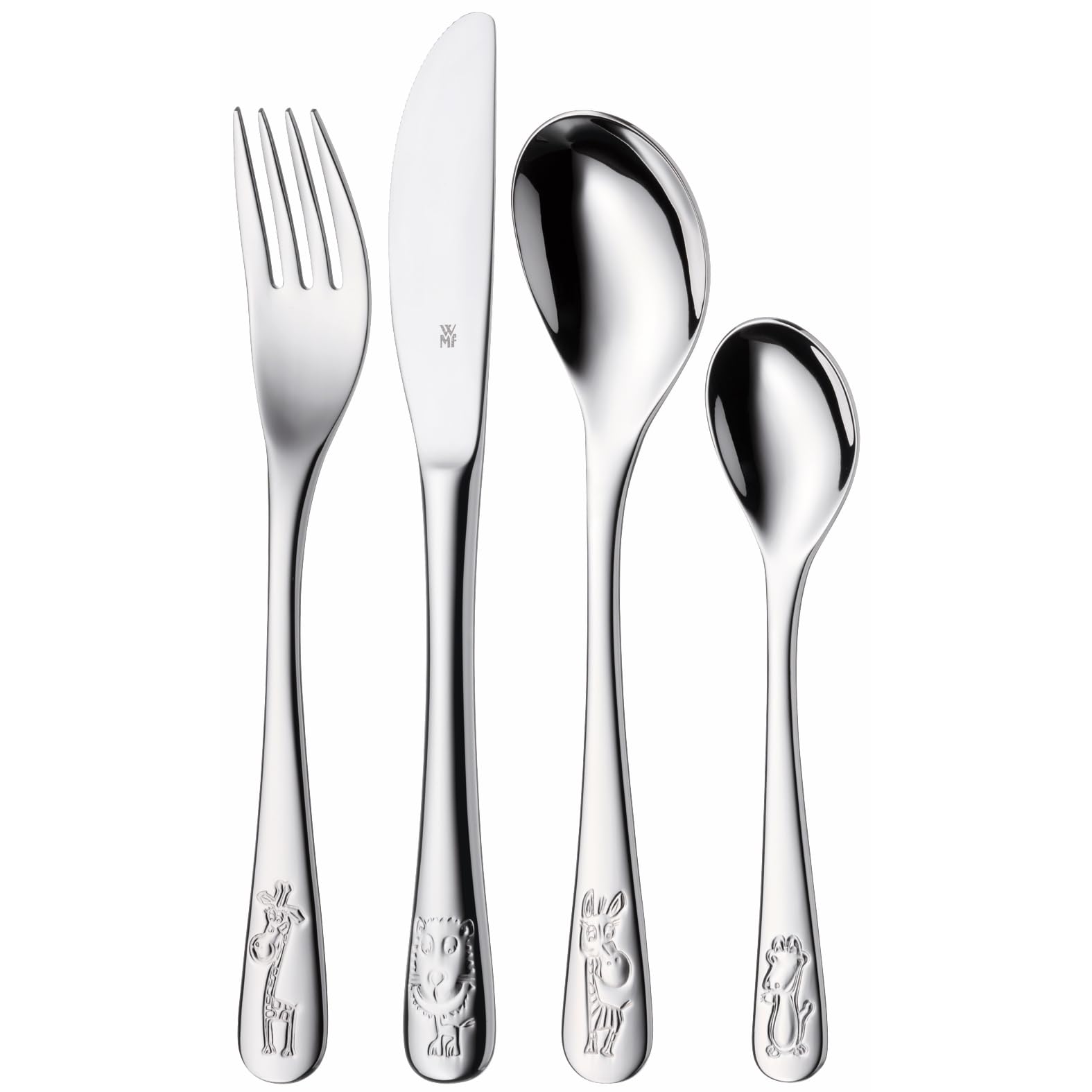 WMF Safari Kinderbesteck Set 4-teilig, Besteck Kinder Edelstahl, Kinderbesteck ab 3 Jahre, Cromargan poliert, spülmaschinengeeignet, Kids Safari, Ohne Gravur