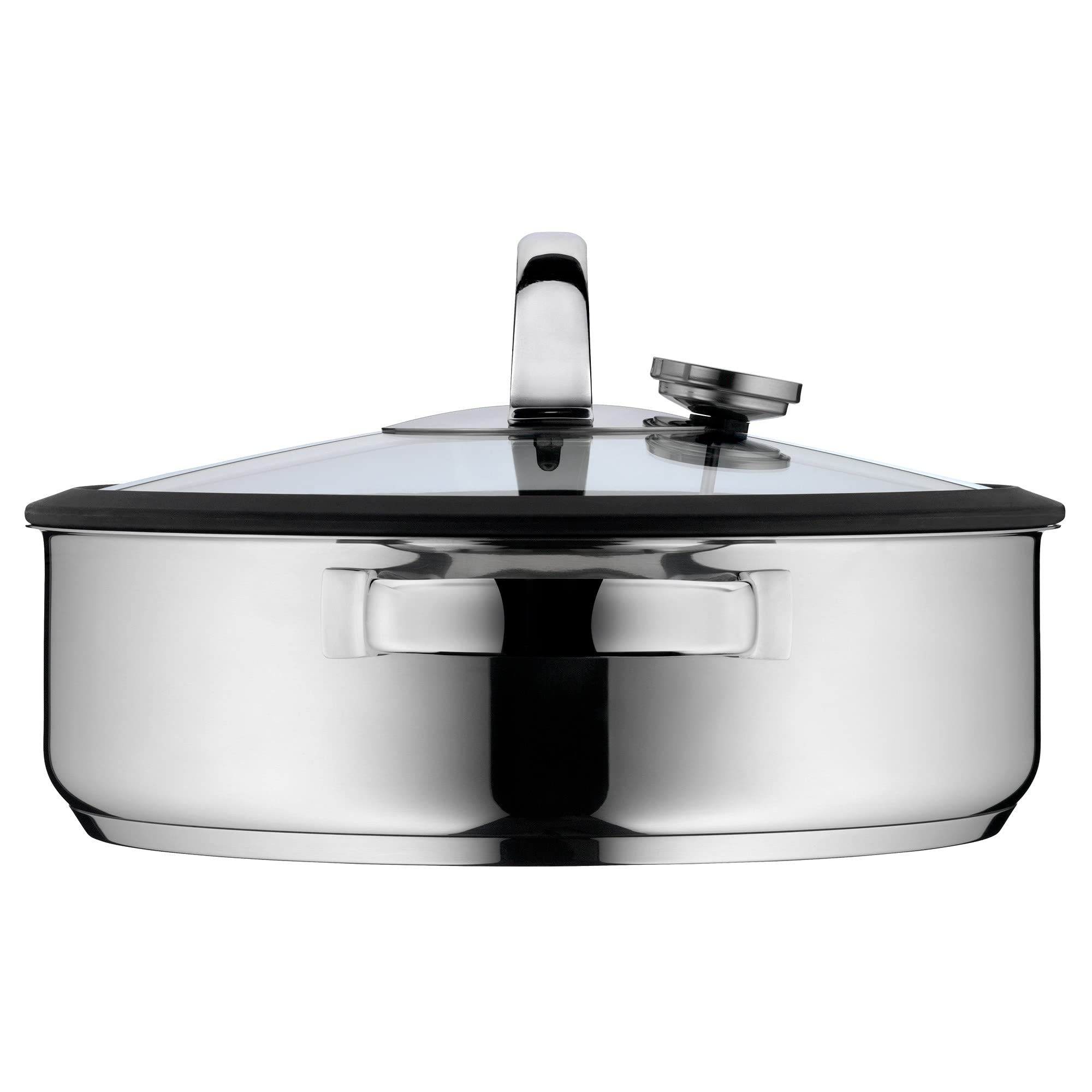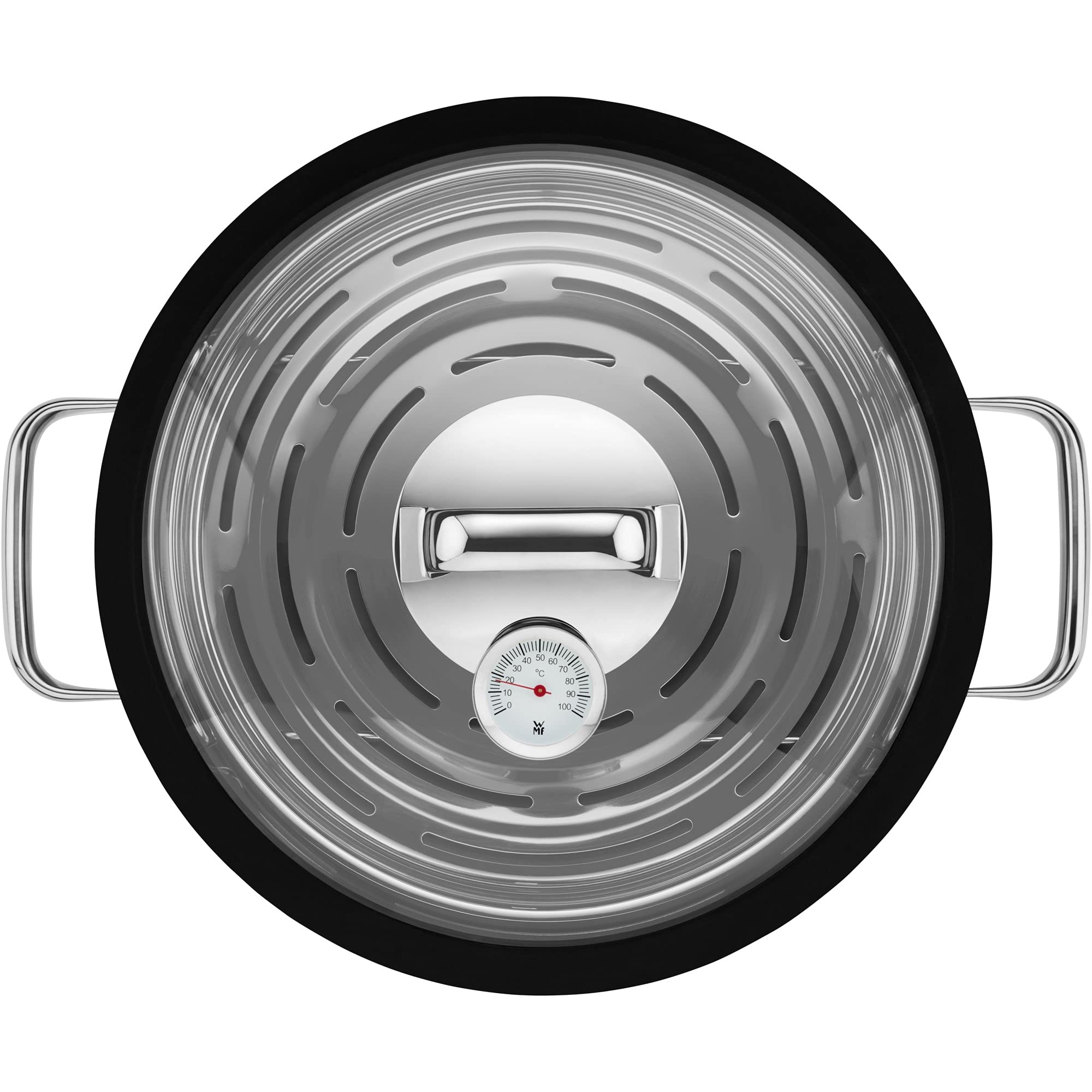 WMF Vitalis Aroma Dampfgarer 28 cm, Dampfgarer Topf, Bräter rund 5,0l, Dampfgartopf, Glasdeckel mit Silikonrand, Garthermometer, Garblech, Cromargan Edelstahl unbeschichtet, backofenfest