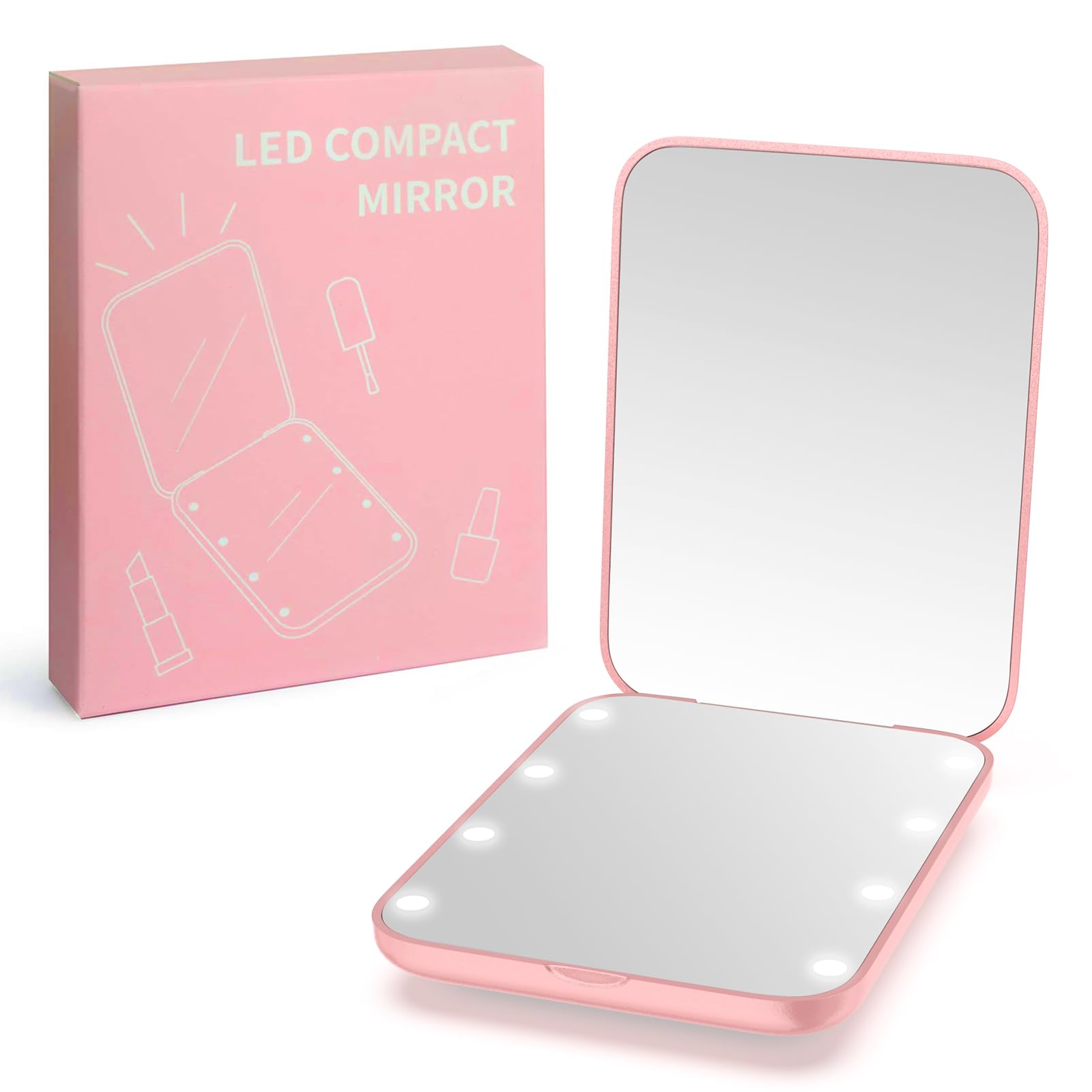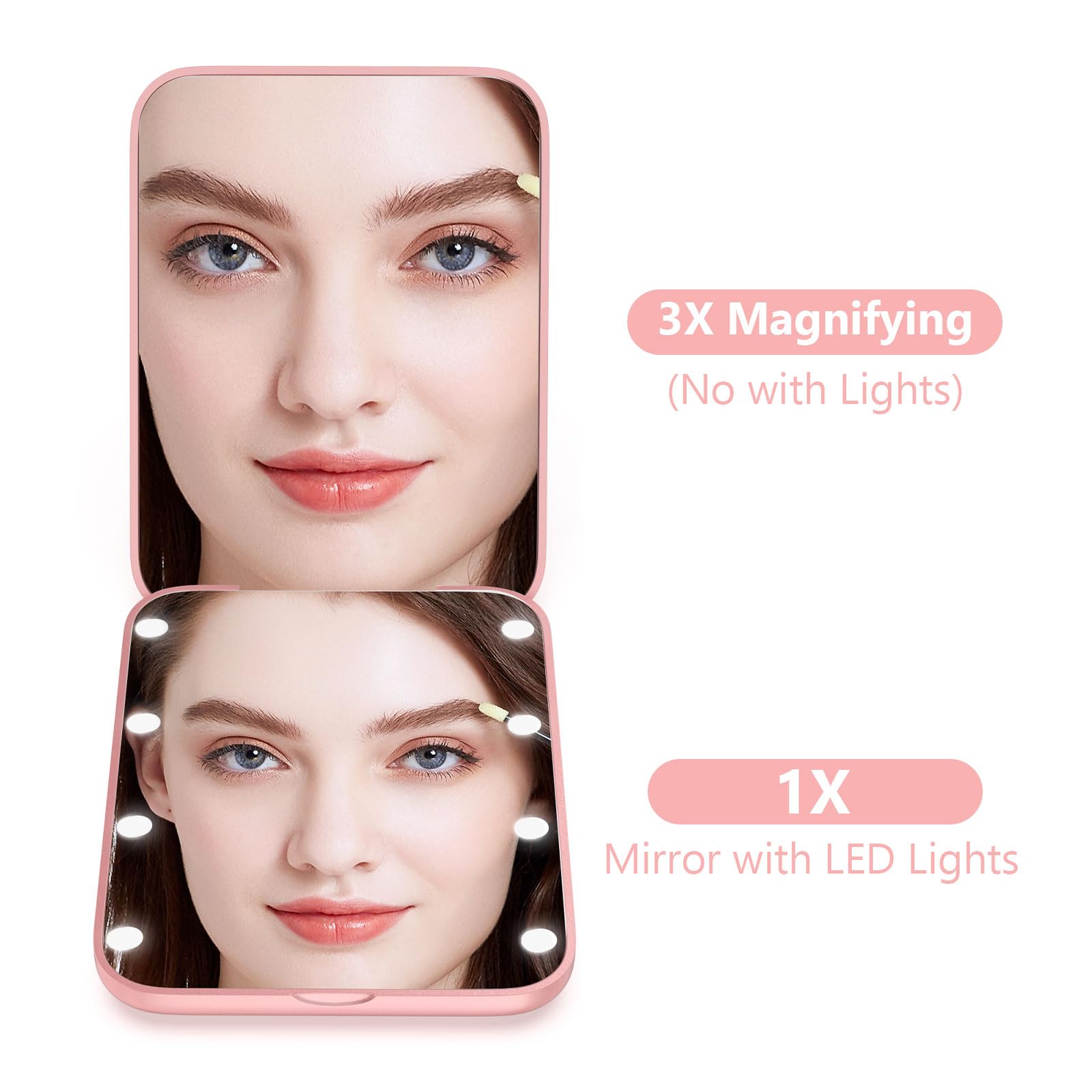 WOBSION LED Taschenspiegel 1×/3× – Beleuchteter Reisespiegel, Roségold