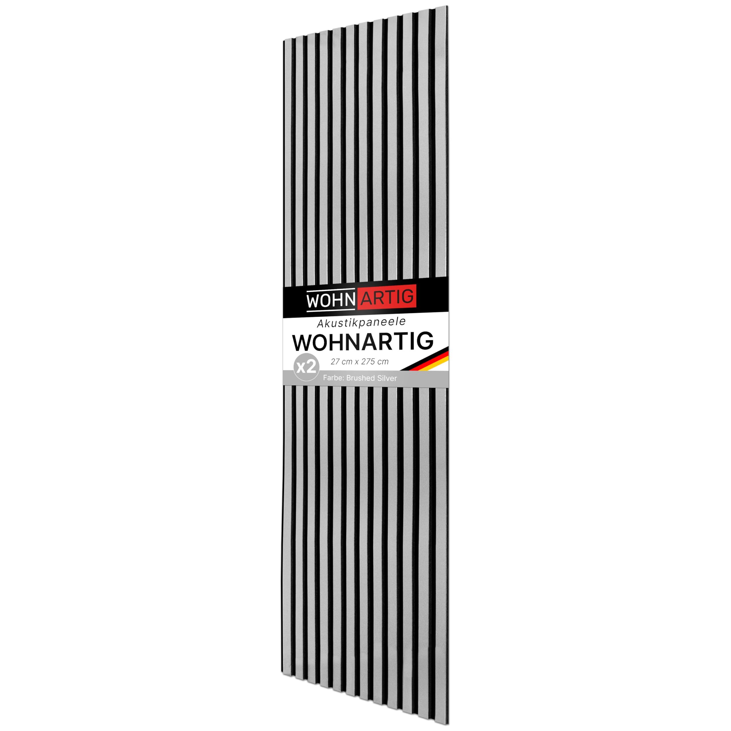 wohnartig® Akustikpaneele 1,485m² - 275cm x 54cm* set - (set = 2 Stück 275cm x 27cm) | Farbe: Brushed Silver 364 | Wandverkleidung | Akustikpaneel | Wandpaneele auf filz | Akustikfilz
