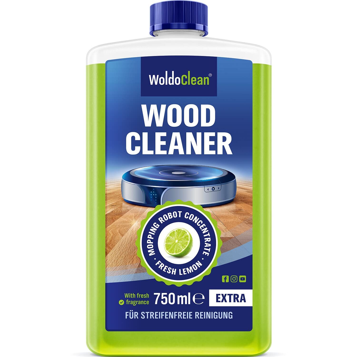 WoldoClean Wischroboter Bodenreiniger Konzentrat 750 ml - streifenfrei für alle Hartböden & Wischroboter, frischer Duft