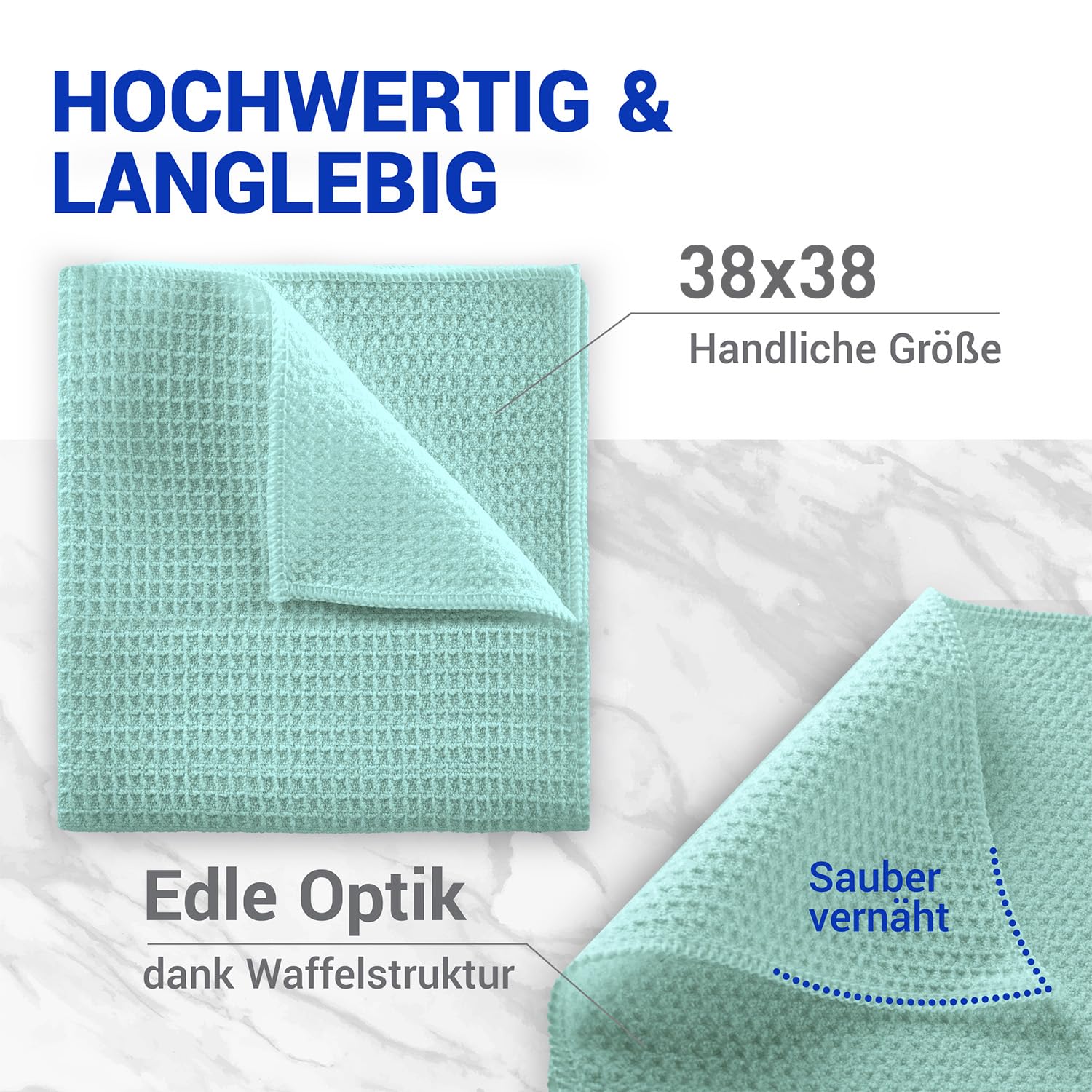 wolk Waffeltücher - Mikrofasertuch mit Waffelstruktur - 10 Stück - Grösse: 38 x 38 cm - Farbe: Mint - Lappen, Reinigungstücher, Putztücher - Bad, Küche, Gastronomie