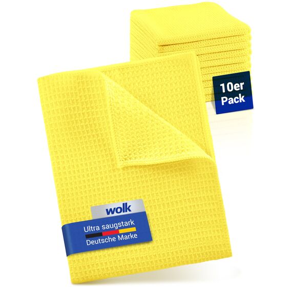 wolk Waffeltücher - Mikrofasertuch mit Waffelstruktur - 10 Stück - Grösse: 38 x 38 cm - Farbe: gelb - Lappen, Reinigungstücher, Putztücher - Bad, Küche, Gastronomie