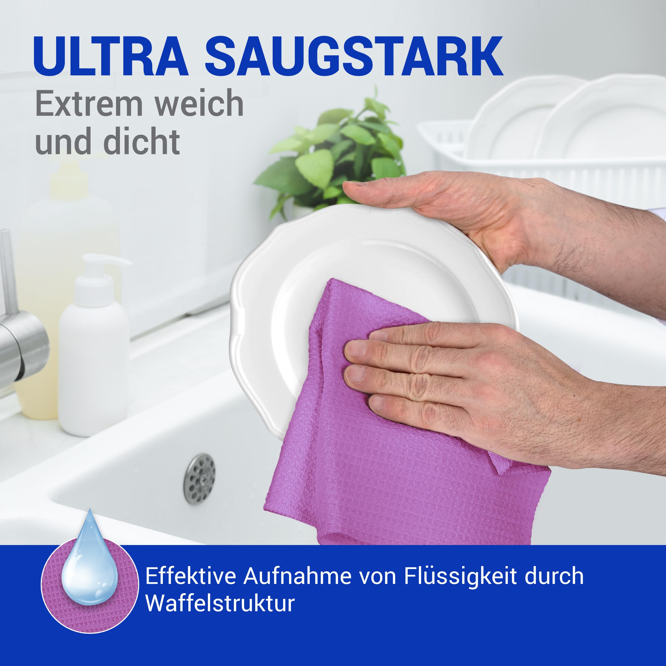 wolk Waffeltücher - Mikrofasertuch mit Waffelstruktur - 10 Stück - Grösse: 38 x 38 cm - Farbe: lila - Lappen, Reinigungstücher, Putztücher - Bad, Küche, Gastronomie