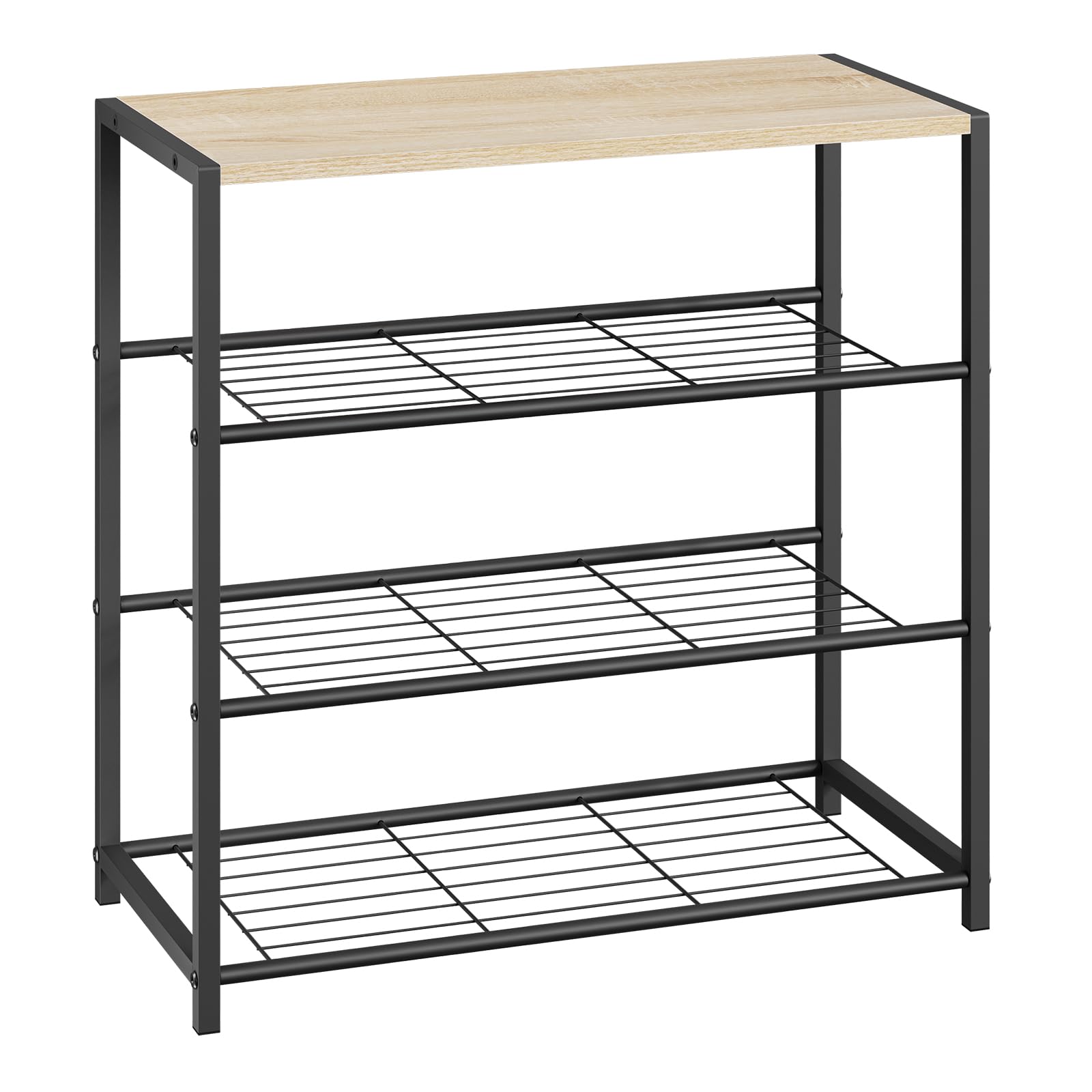 WOLTU Schuhregal mit 3 Ebenen, Schuhständer Metall, Schuhaufbewahrung platzsparend, Schuhorganizer für 9 Paar, Flur Wohnzimmer, 63x63x30 cm, schwarz