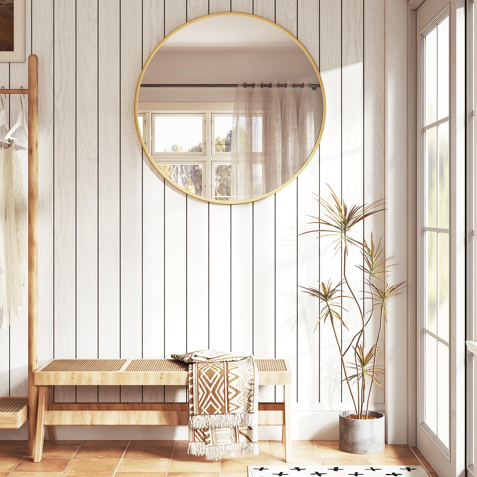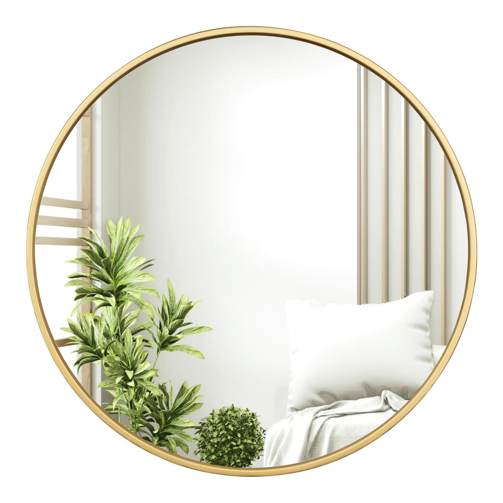 WOLTU Wandspielgel mit Metallrahmen, φ81cm Schminkspiegel, Badezimmerspiegel mit MDF-Rückwand, Moderner Spiegel rund zur Wanddekoration, für Wohnzimmer Schlafzimmer Flur