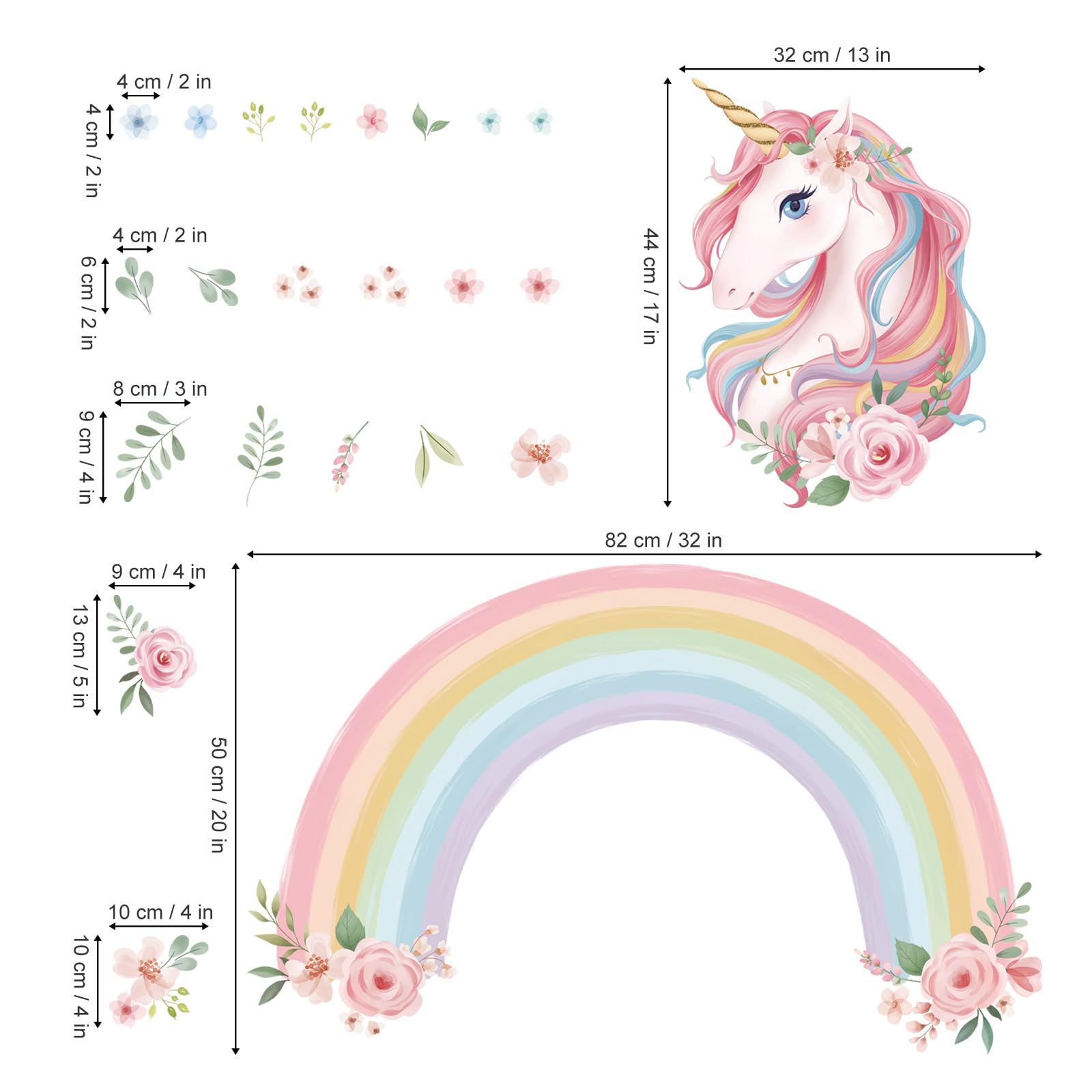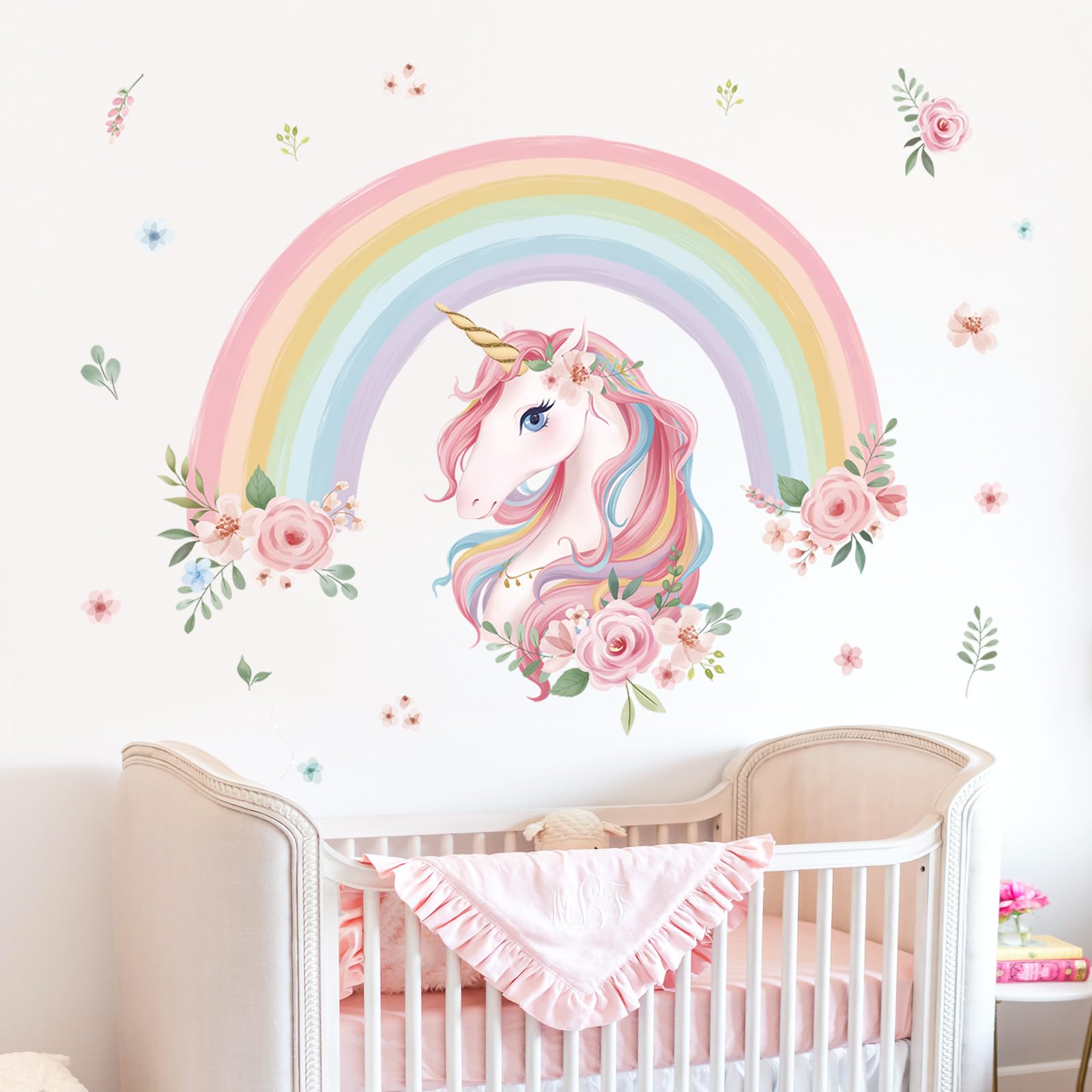 wondever Wandtattoo Regenbogen Gross Wandaufkleber Einhorn Blumen Wandsticker Wanddeko für Mädchen Kinderzimmer Schlafzimmer Wohnzimmer