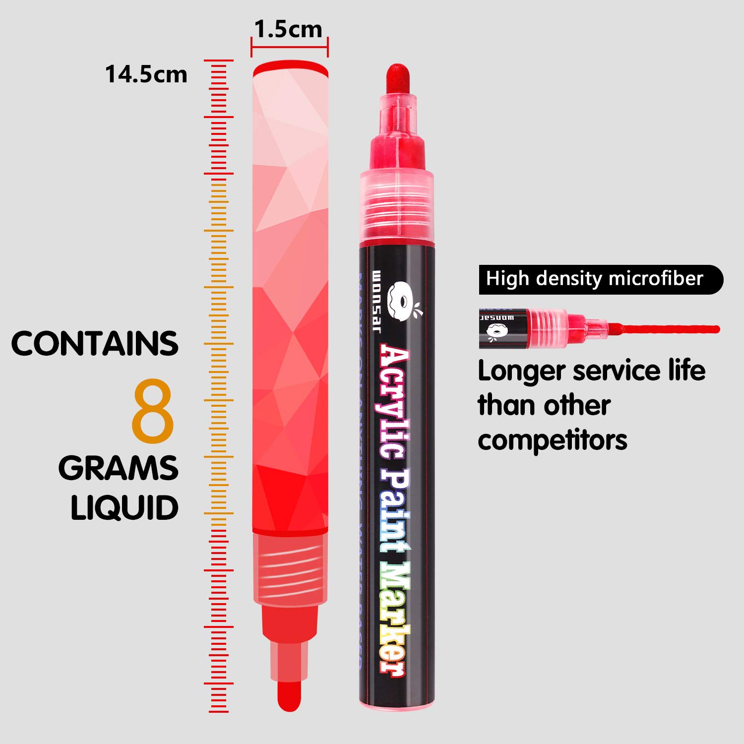 wonsar Acrylstifte Marker Stifte, 12 Farben Wasserfest Acrylstifte für Steine Bemalen, Acrylfarben Stifte für Glas Kinder DIY Keramik Porzellan Metall Kunststoff Holz, Leinwand (Medium Spitze)