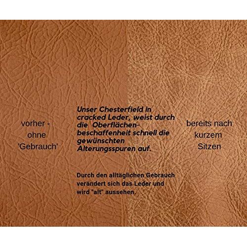 Woodkings® Chesterfield Sofa 3-Sitzer Vintage Echtleder Couch Bürosofa Polstermöbel 3 Sitzer antik Designsofa Federkern Unikat Herrenzimmer englisches Leder Stilsofa Clubsofa (Cracker braun)