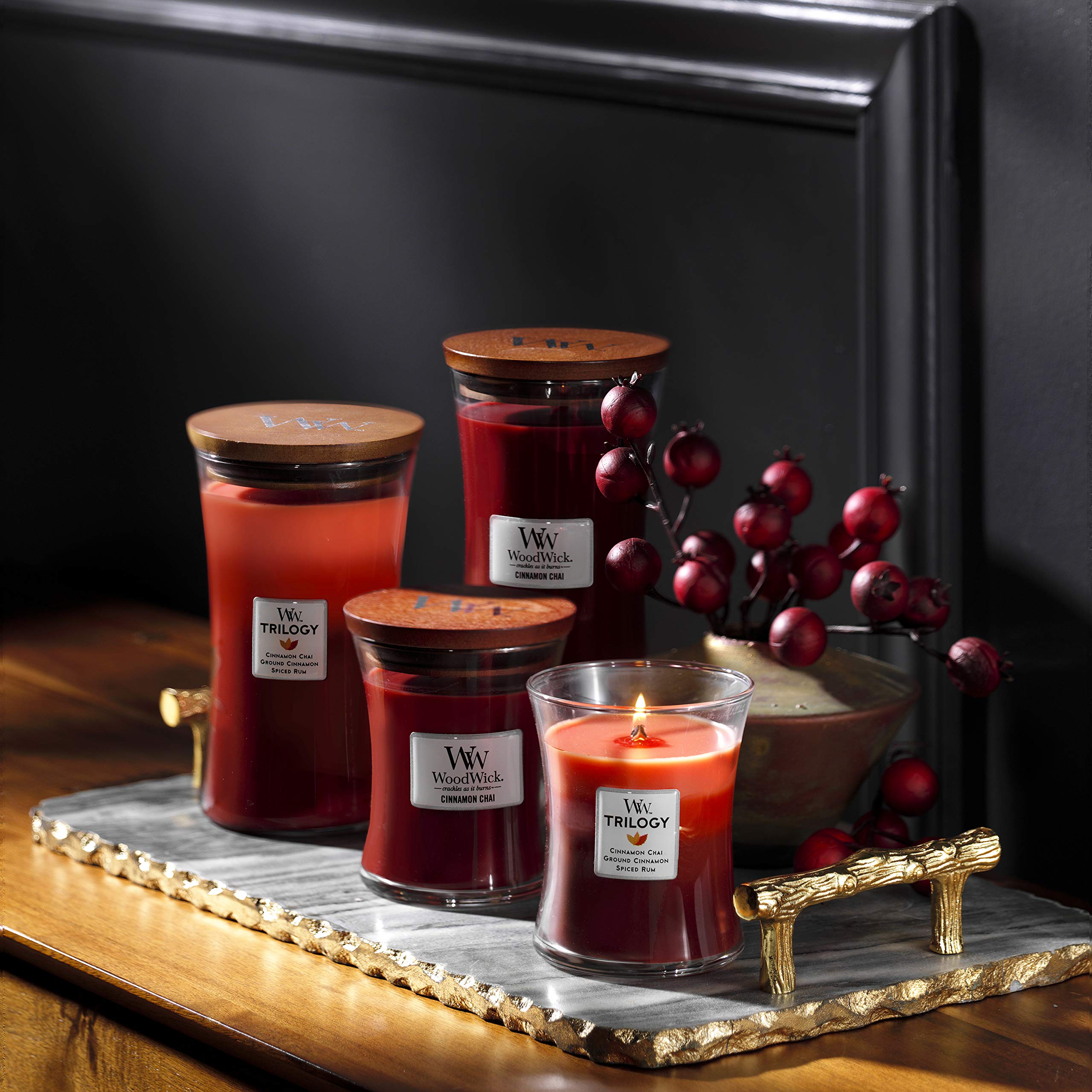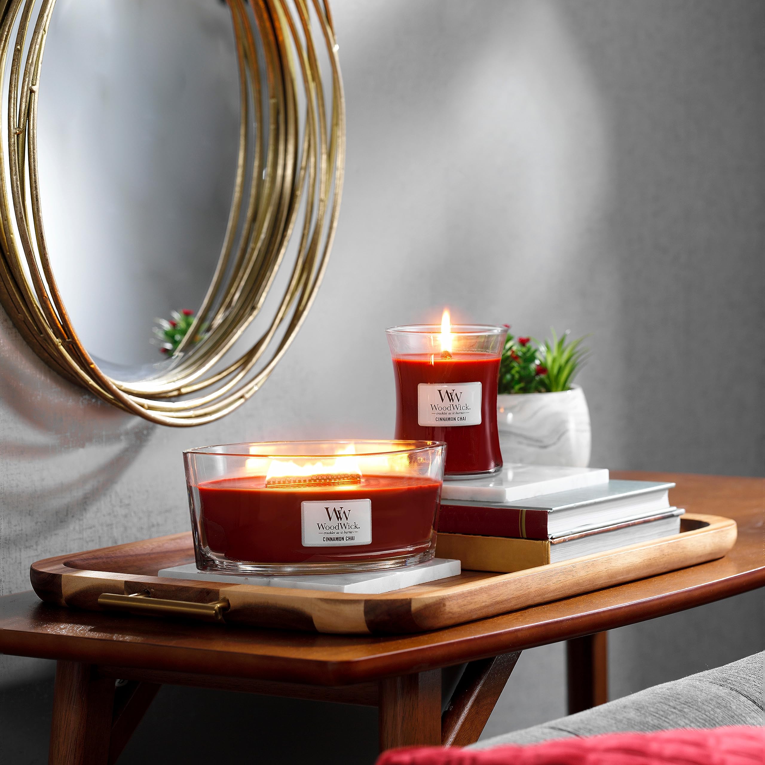 WoodWick mittelgrosse Duftkerze im Sanduhrglas mit knisterndem Docht | Cinnamon Chai | Brenndauer bis zu 60 Stunden