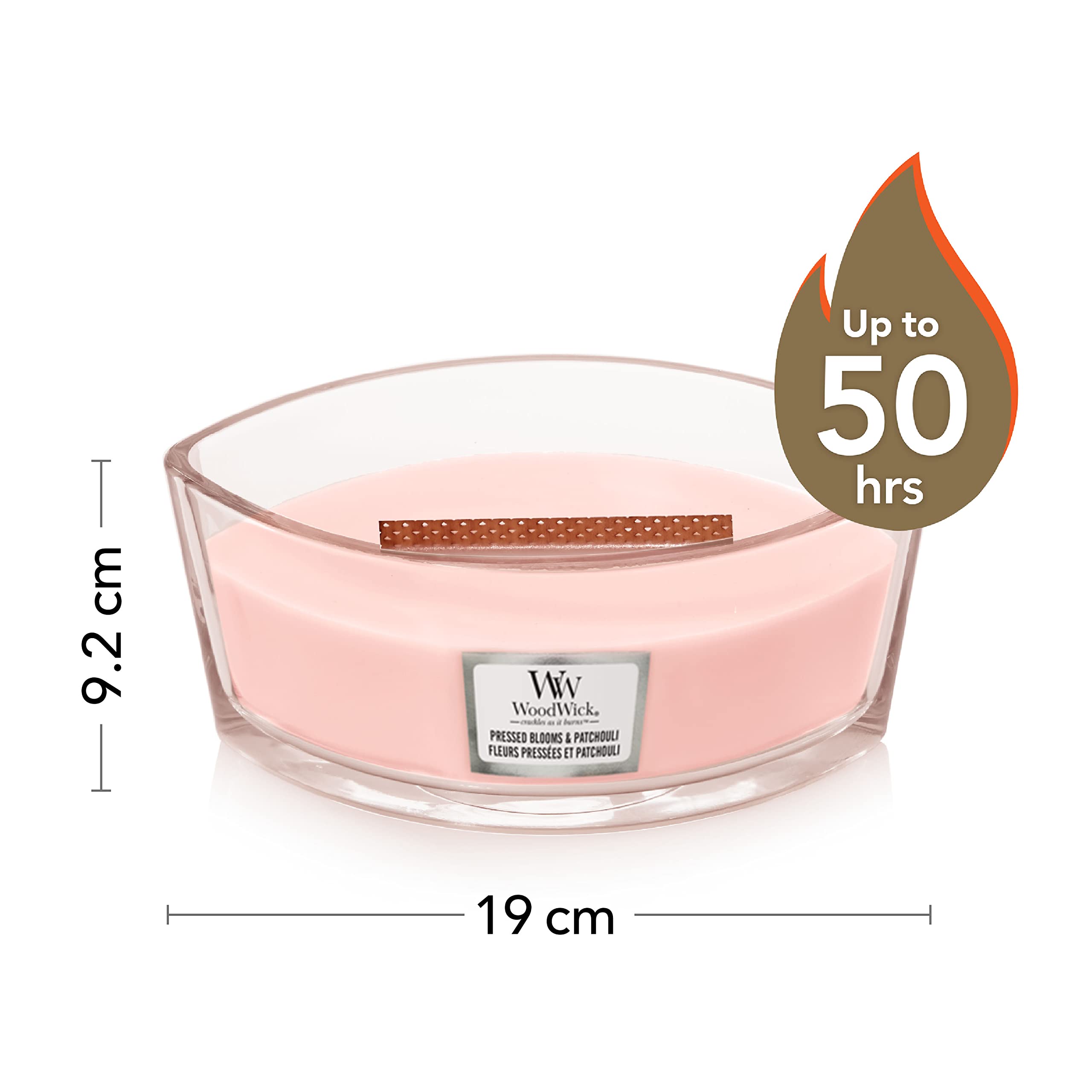 WoodWick ellipsenförmige Duftkerze mit knisterndem Docht | Pressed Blooms & Patchouli | Brenndauer bis zu 50 Stunden