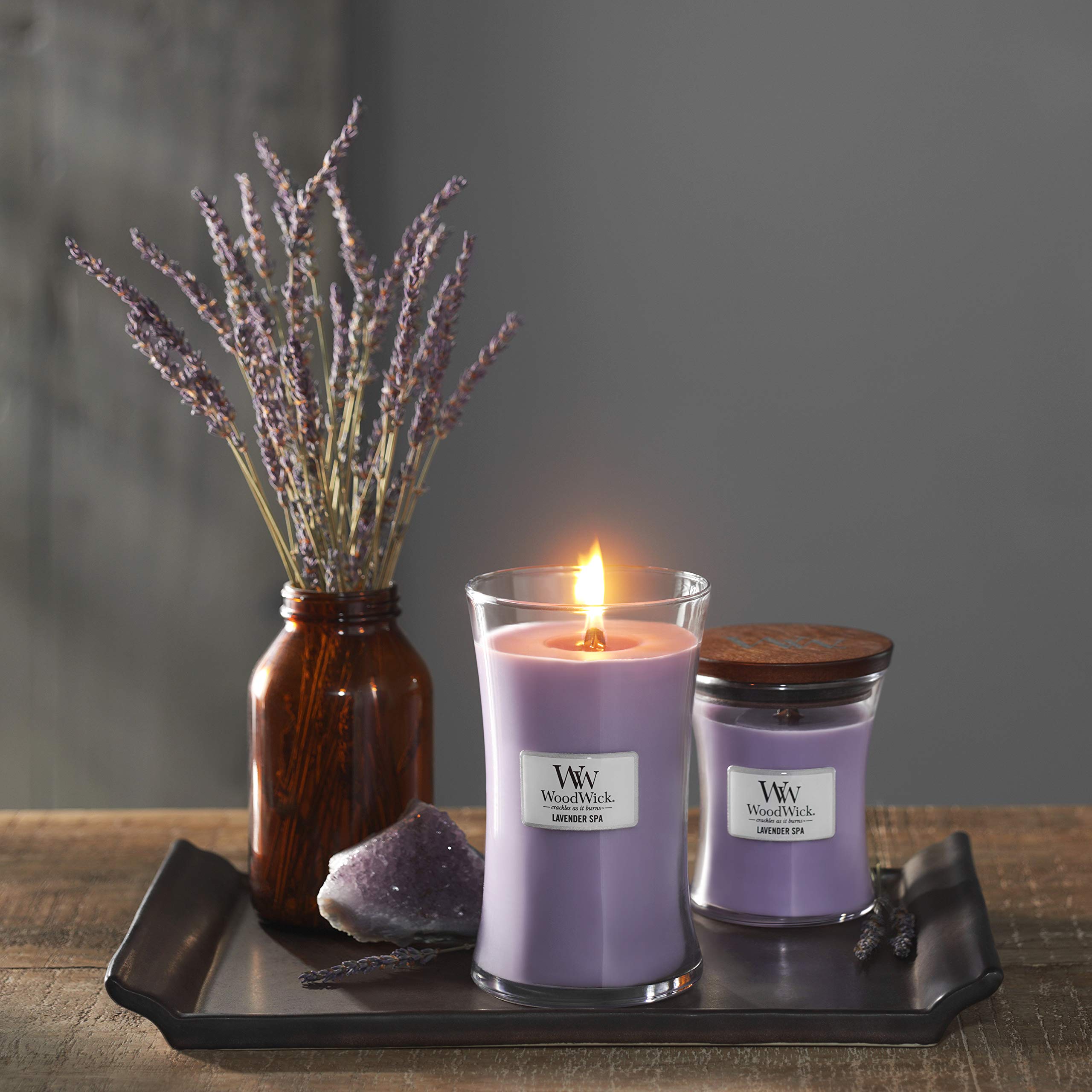 WoodWick Grosse Sanduhr-Duftkerze | Lavender Spa | mit knisterndem Docht | Brenndauer: bis zu 130 Stunden
