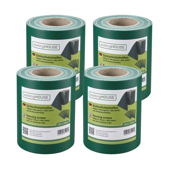 WORKINGHOUSE PVC Sichtschutzstreifen 450g/m² Standard für Doppelstabmatten Zaun – 4er Spar-Set (140m Gesamtlänge), Grün RAL 6005 | Wind- & Blickschutz, wetterfest, inkl. Clips
