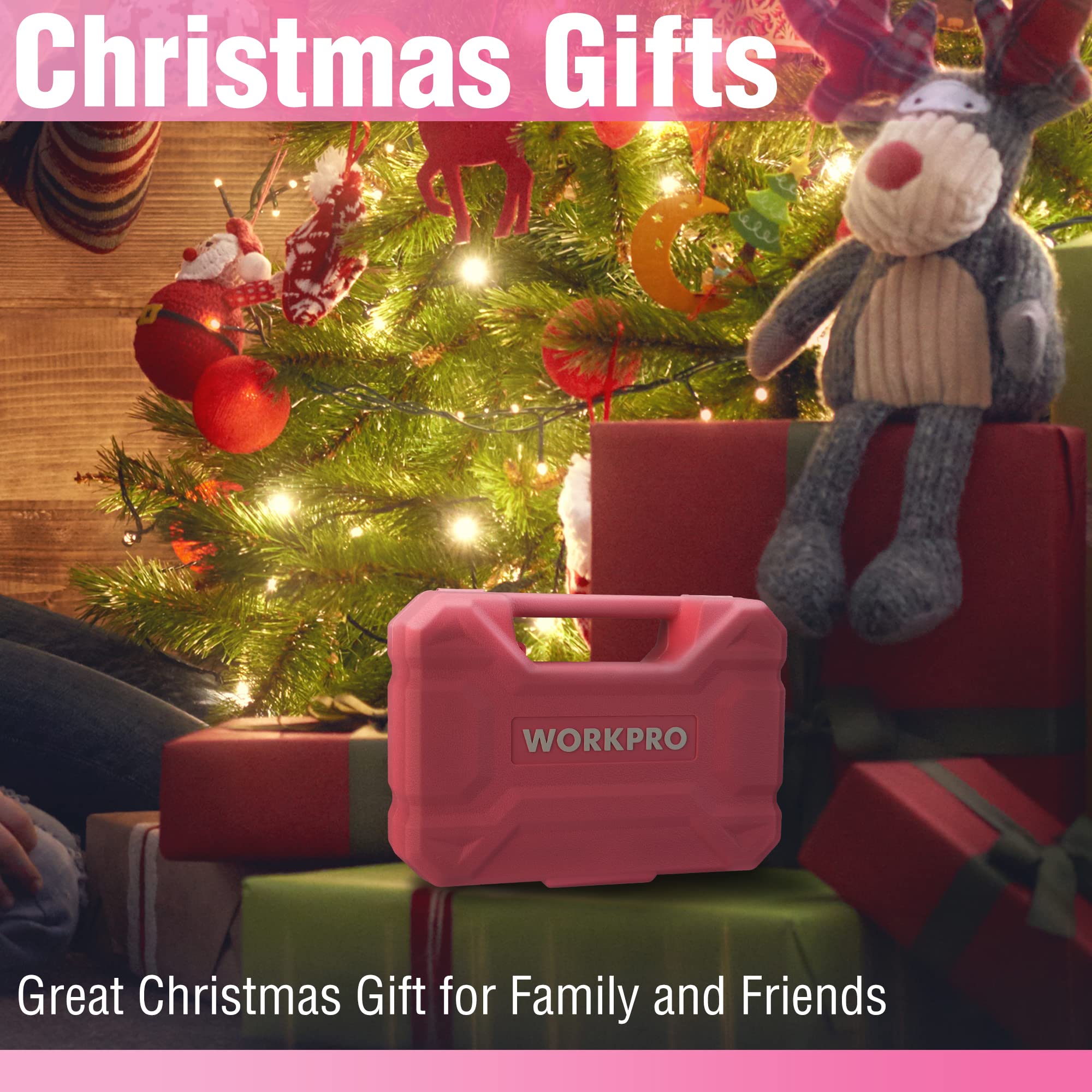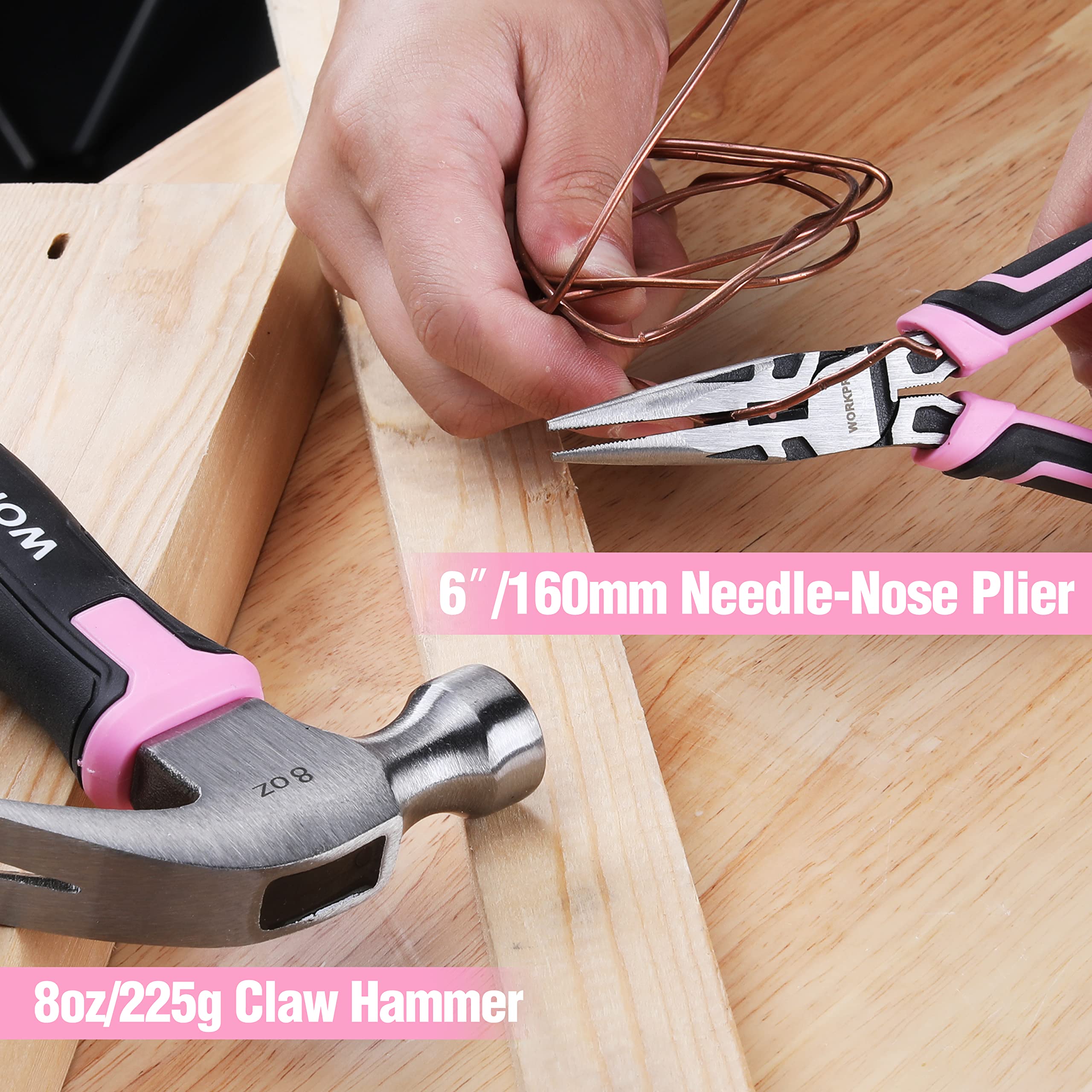 WORKPRO Werkzeugset 35tlg. Rosa Werkzeugsatz, Werkzeugkoffer bestückt, tägliche Werkzeuge, mit Schraubendreher, Zange, Massband, Innensechskantschlüssel für Heimbedarf, Geschenk für DIY-Anfänger