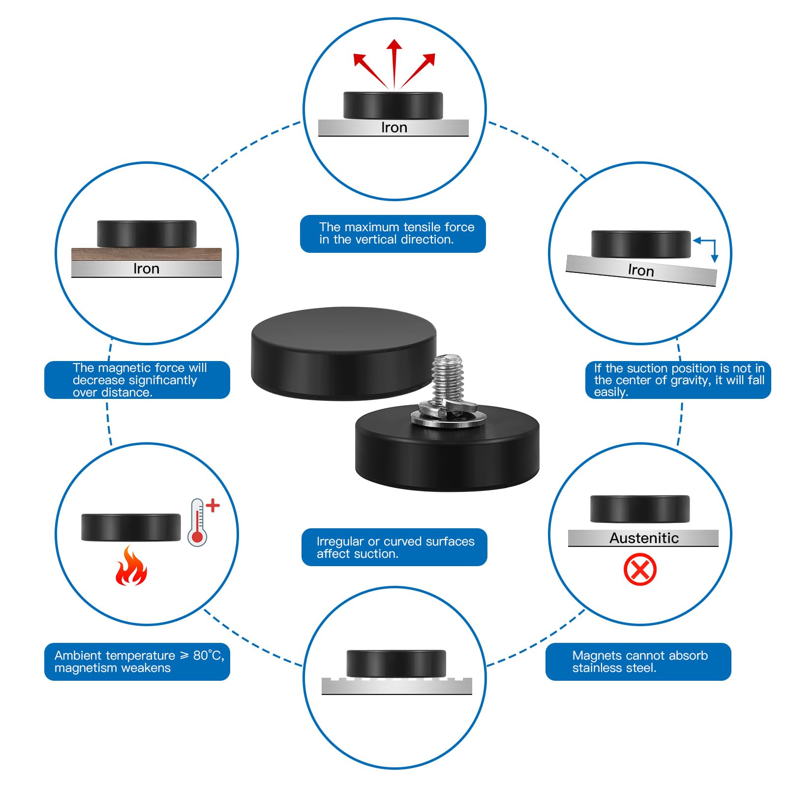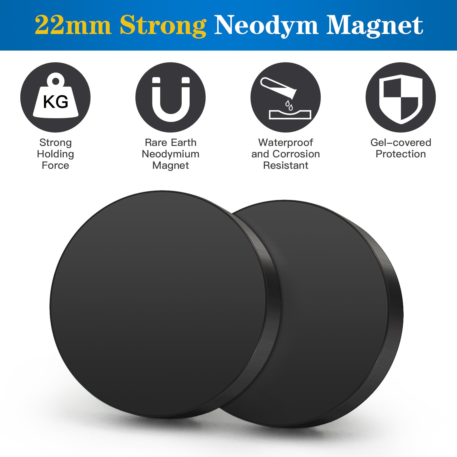 Wukong Gummierte Magnete Ø22mm, 4 Stück Stark Anti-Rutsch Mit M4 Flacher Faden, Magnete mit Gewinde für Fahrzeuge, Lampen, Befestigen von Werkzeugen