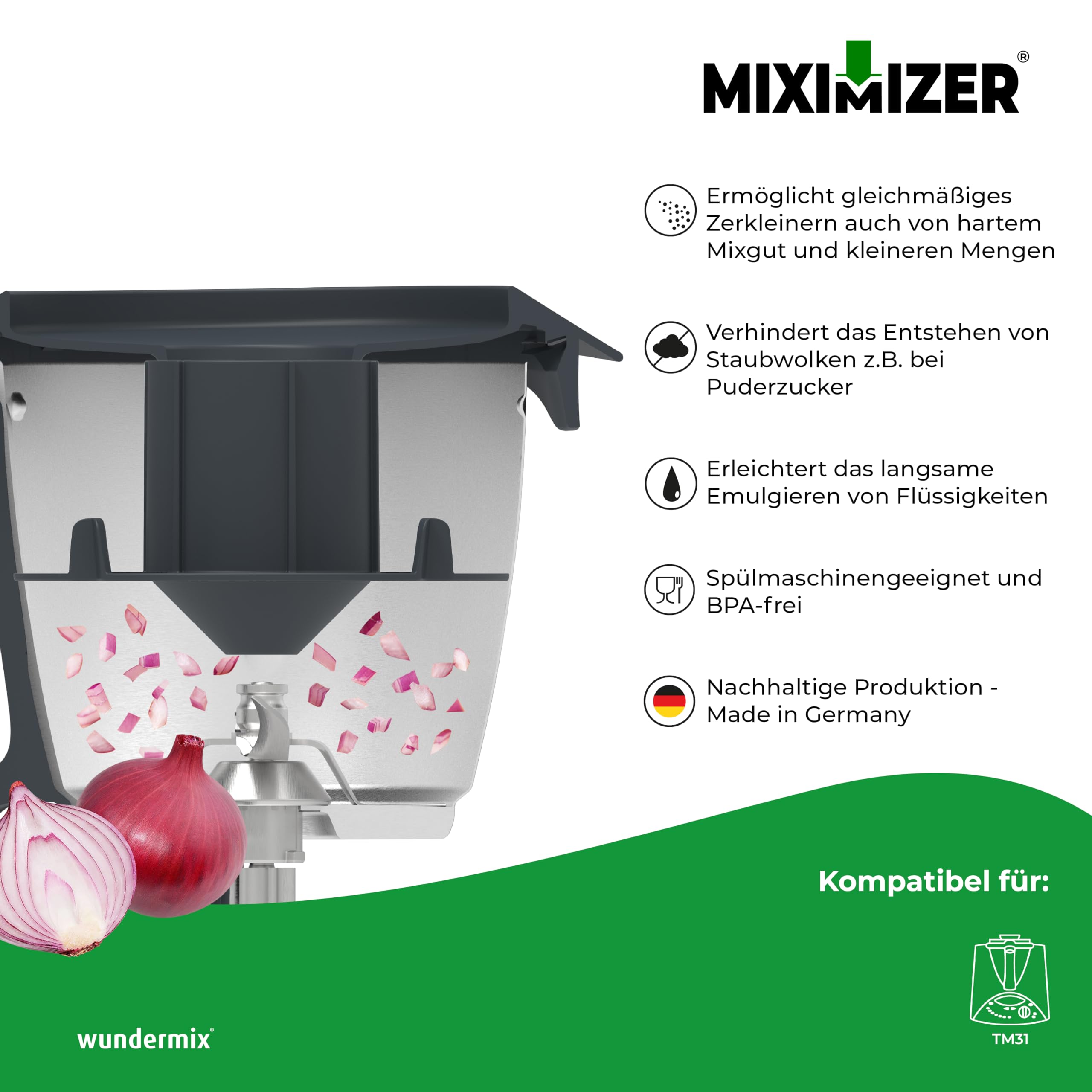 Wundermix - Miximizer® Mixtopf-Verkleinerung für Thermomix TM31 • Effektives Häckseln, Mixen & Zerkleinern von Lebensmitteln • Made in Germany