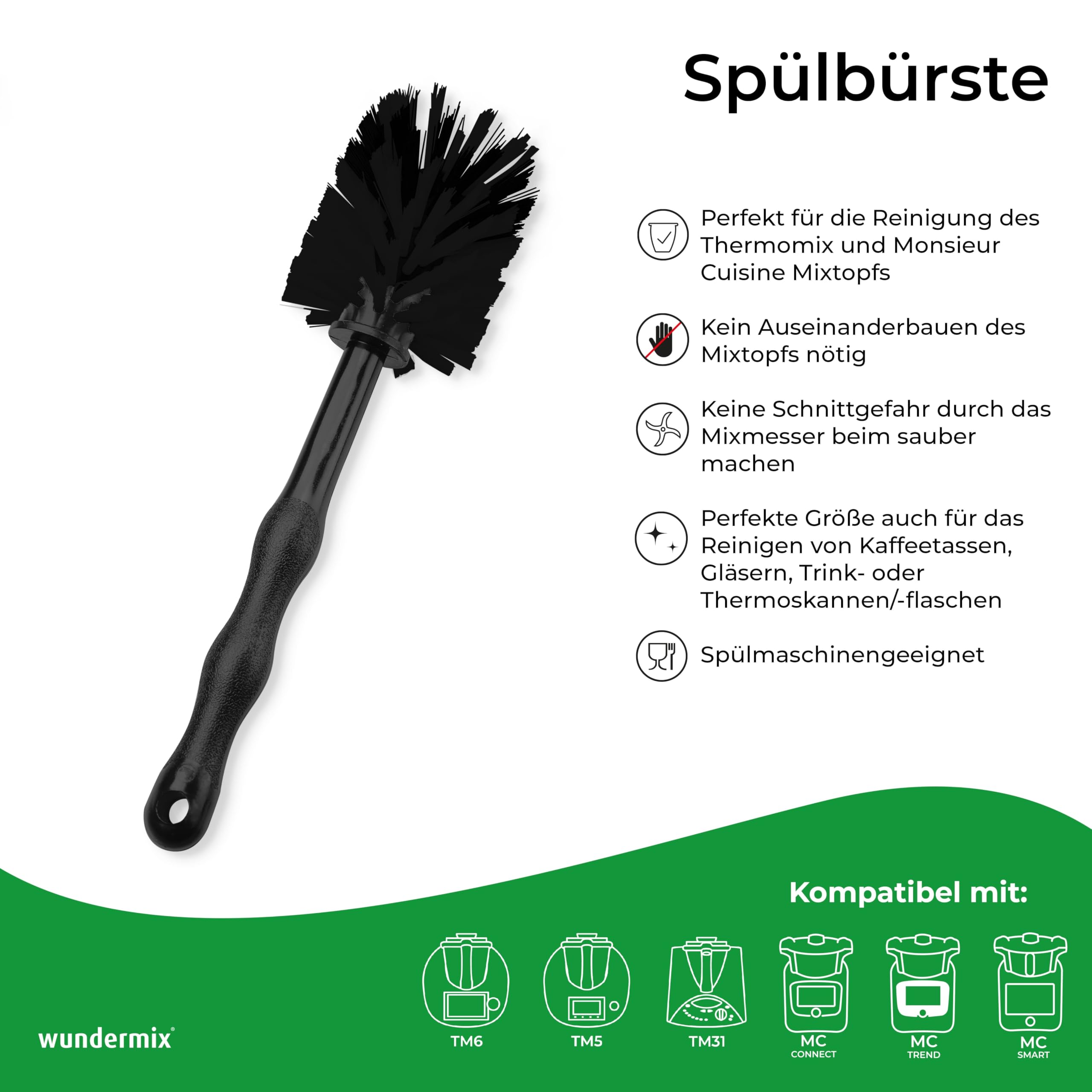 Wundermix - Mixtopf-Spülbürste für deine Küchenmaschine (1 St.) • Reinigungsbürste für Mixtöpfe gängiger Küchenmaschinen • Robuste Bürste mit Nylon-Borsten • Spülbürste (Vollschwarz)