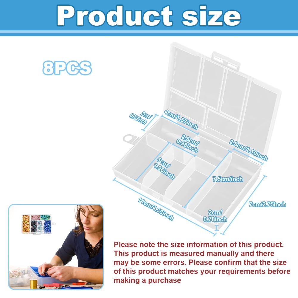 Verpackungsinhalt: 8 Stück durchsichtige Plastik-Storage-Boxen mit Deckel, Mini-Container-Boxen, kleine Plastik-Storage-Container, Perlen-Organizer mit Mini-Deckel.