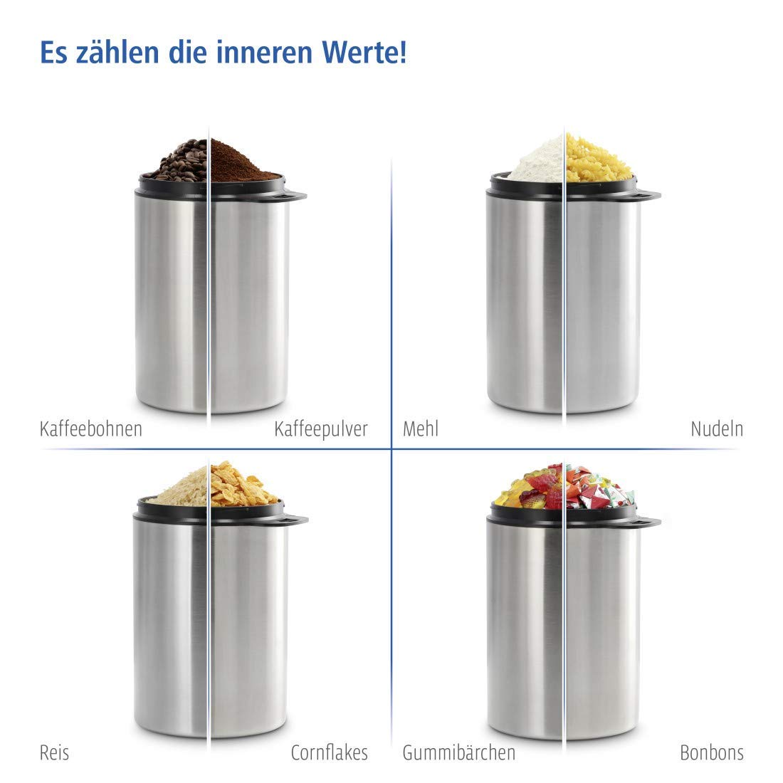 Xavax Kaffeedose luftdicht für 1 kg Kaffeebohnen (Behälter für Kaffee, Tee, Kakao, Nudeln, Edelstahl Dose zur Aufbewahrung mit Aromaverschluss, Vorratsdose für 1000 g Kaffee) silber