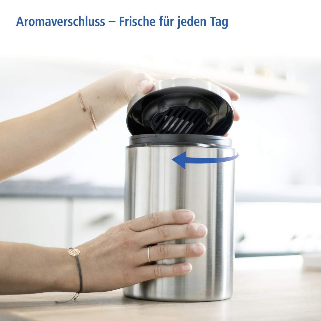 Xavax Kaffeedose luftdicht für 1kg Kaffeebohnen (Behälter für Kaffee, Tee, Kakao, Nudeln, Edelstahl Dose zur Aufbewahrung mit Aromaverschluss, Vorratsdose für 1000g Kaffee) silber
