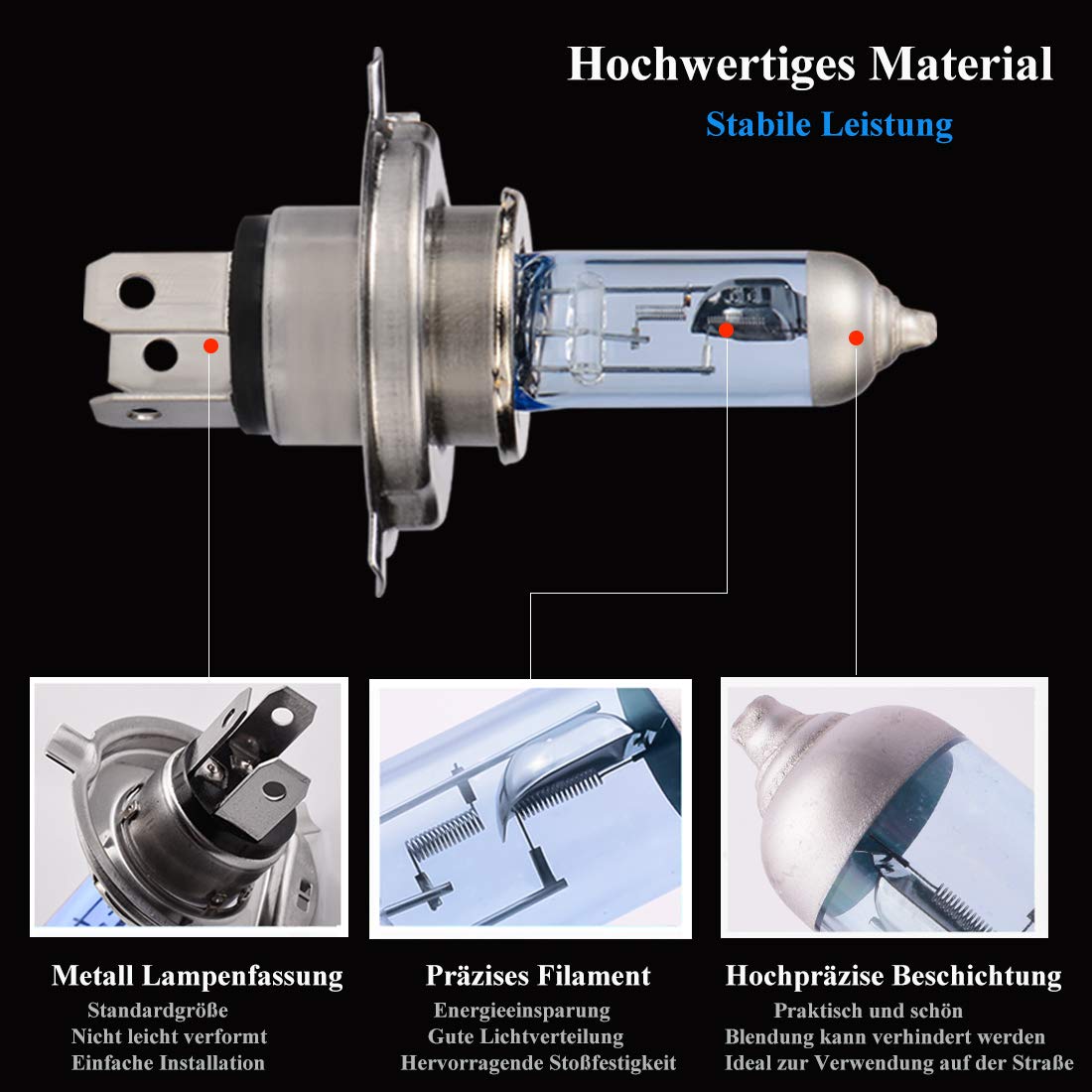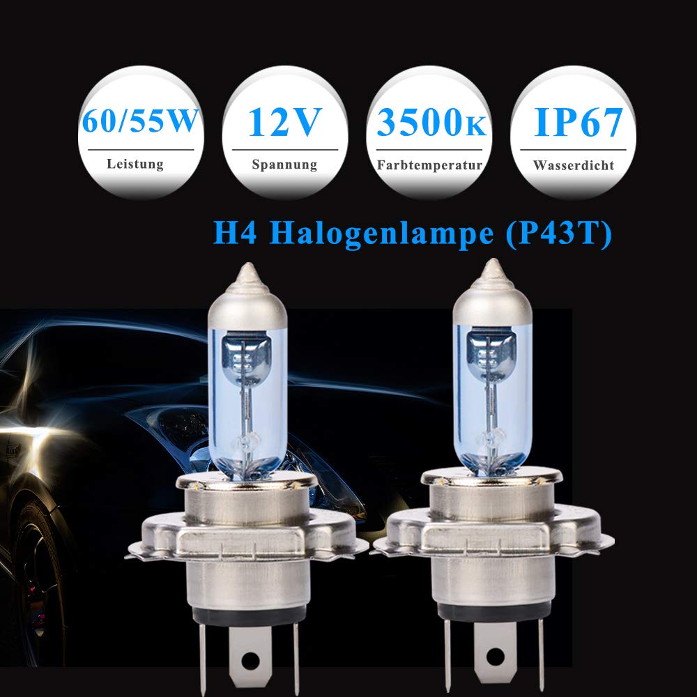 XELORD H4 Scheinwerferlampe Birne 55W 12V Auto Abblendlicht Fernlicht lampen mit Zulassung-2 Stück