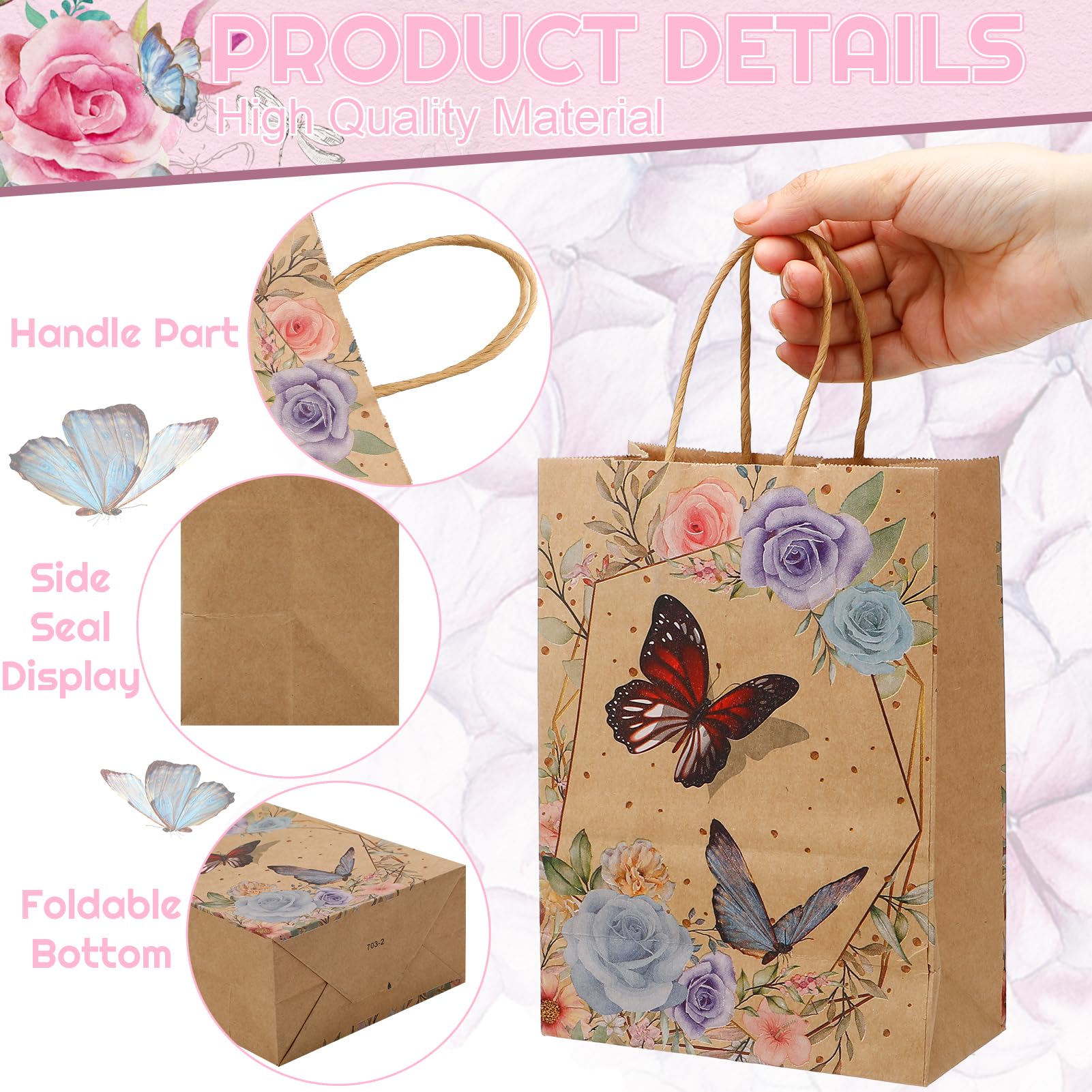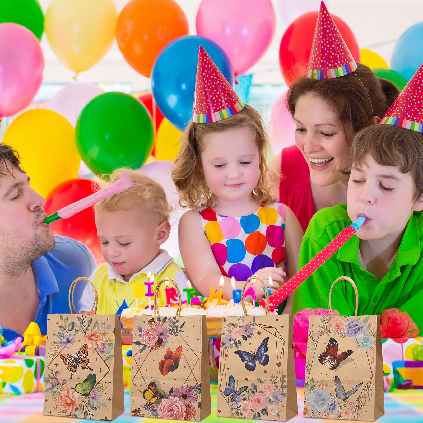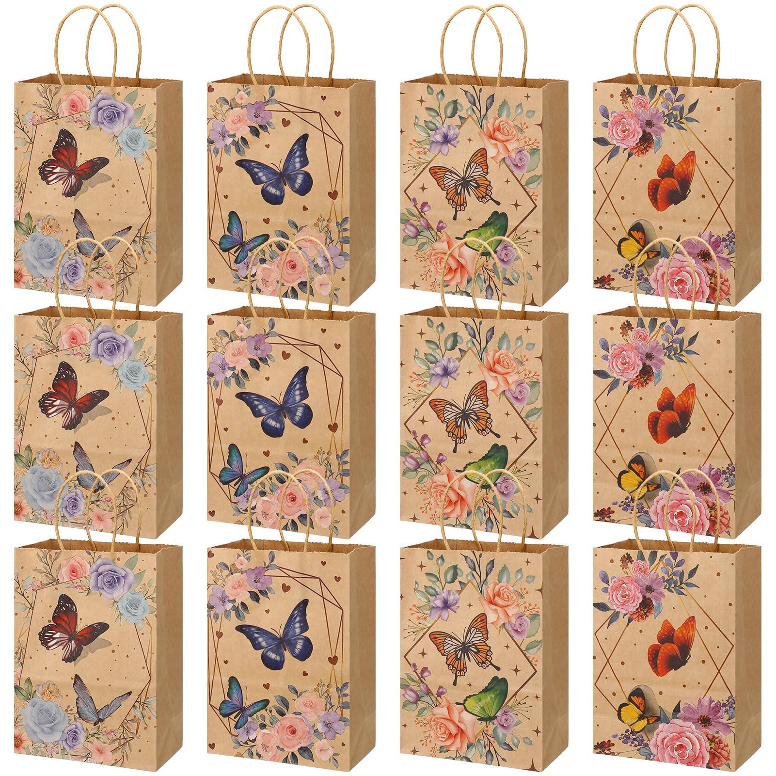 Xinstroe 12 Stück Papiertüten Kinder Geschenktüten Partytüten Papier Tüten zum Verpacken von Geschenken, Giveaways, Kindergeburtstag, Hochzeit, Party, Schmetterling Braun