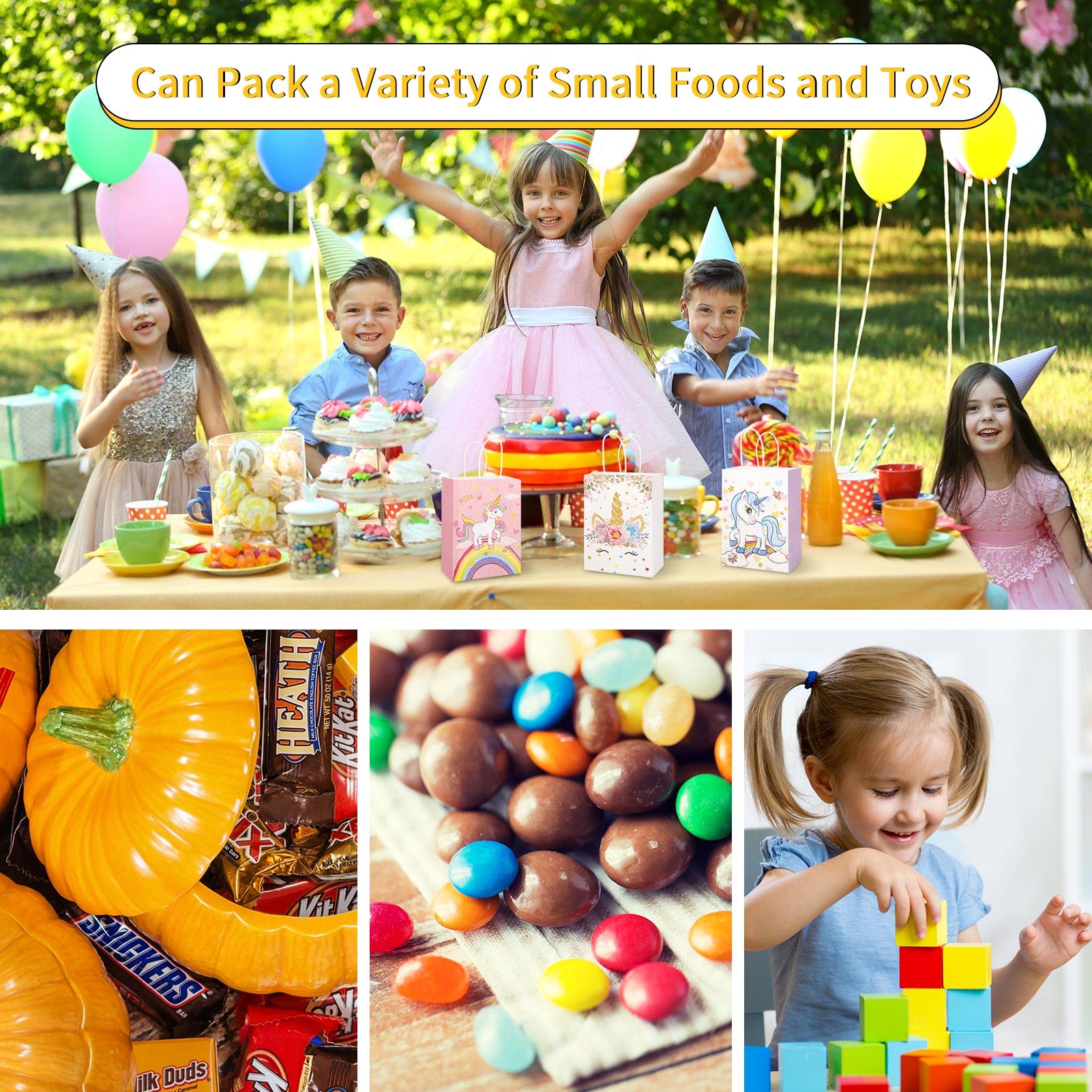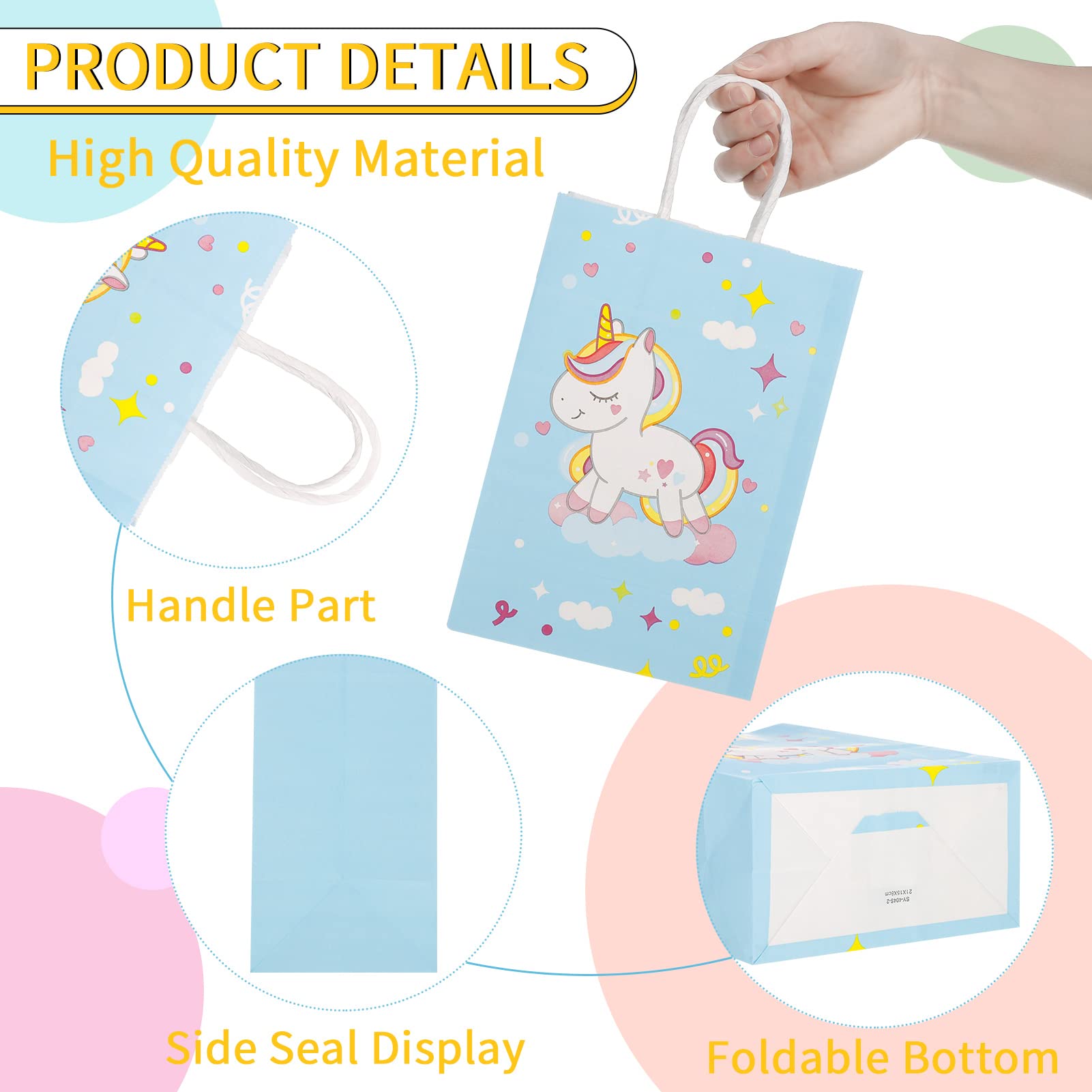 Xinstroe 12 Stück Papiertüten Kinder Geschenktüten Partytüten Einhorn Papiertüten Papier Tüten zum Verpacken von Geschenken, Giveaways, Kindergeburtstag, Hochzeit, Party, Einhorn Rosa