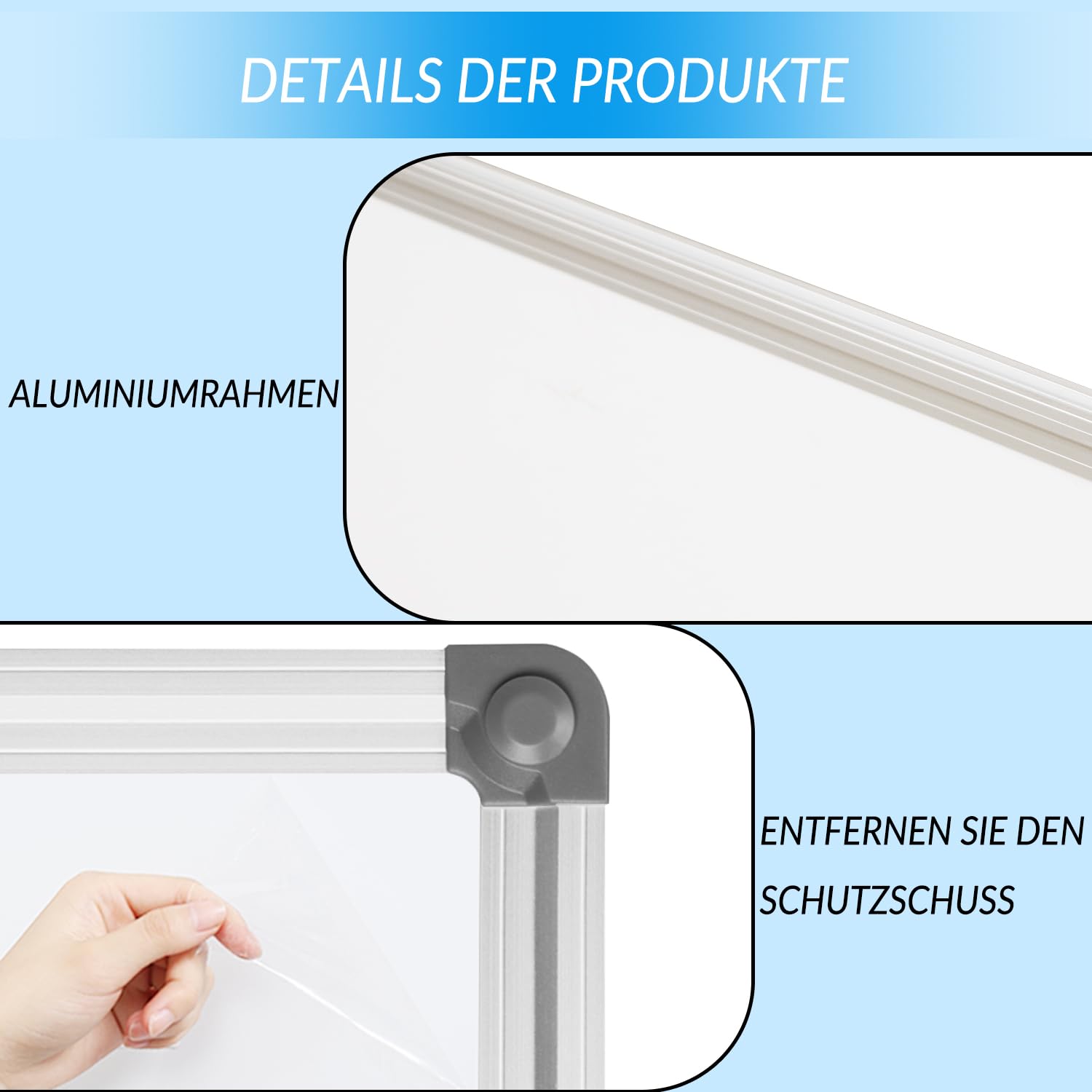 Faltbare Magnet-Whiteboard mit Aluminiumrahmen | 90x150cm – Elegant Professionelles Magnet-Whiteboard in modernem Weiss, kombiniert Funktionalität und ästhetisches Design für vielfältige Einsatzbereiche. Der Hochwertige Aluminiumrahmen garantiert Stabilität und Langlebigkeit, während die faltbare Klappkonstruktion platzsparende Lagerung und einfachen Transport ermöglicht – ideal für flexible Nutzung im Büro, Homeoffice oder Kinderzimmer.Hauptmerkmale im Überblick:✅ Premium MaterialienRostfreier Aluminiumrahmen: Leichtgewicht (nur 7,6 kg) Abwischbare Magnetoberfläche: Glatte Whiteboard-Fläche für präzises Schreiben mit allen Markertypen, rückstandsfrei löschbar.· ✅ Optimierte FunktionalitätWandmontage & Standalone Nutzung: Dank klappbarem Design als Wandboard oder freistehende Tafel einsetzbar.· ✅ DesignvorteileGeräuscharmer Klappmechanismus: Spezielle Scharniertechnologie verhindert störendes Knacken beim Auf- und Zuklappen.· Anwendungsszenarien· Büro/Homeoffice: Organisieren Sie Besprechungsnotizen, Projektpläne oder To-do-Listen.· · Kinderzimmer: Förderung der Kreativität durch Malflächen oder spielerisches Lernen.· · Bildungseinrichtungen: Hygienische Alternative zu Kreidetafeln mit magnetischer Präsentationsfläche.· Warum dieses Whiteboard?Durch die Kombination aus deutschem Ingenieursdesign (präzise Verarbeitung des Aluminiumrahmens) und praxisorientierten Features (klappbar, magnetisch, wandelbar) bietet dieses Whiteboard maximale Flexibilität – ob für schnelle Notizen im Homeoffice oder als interaktive Familienplaner-Zentrale.